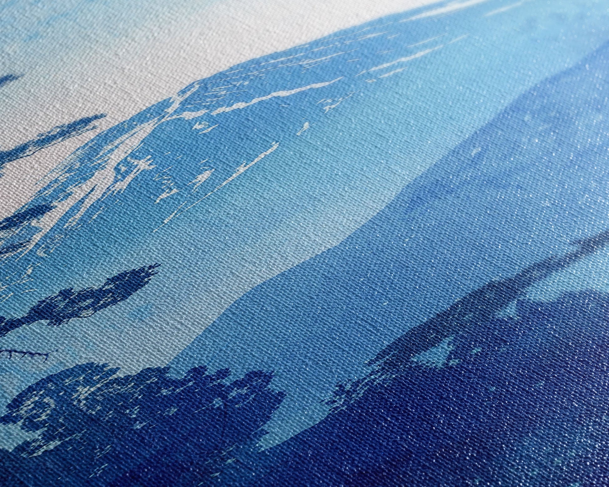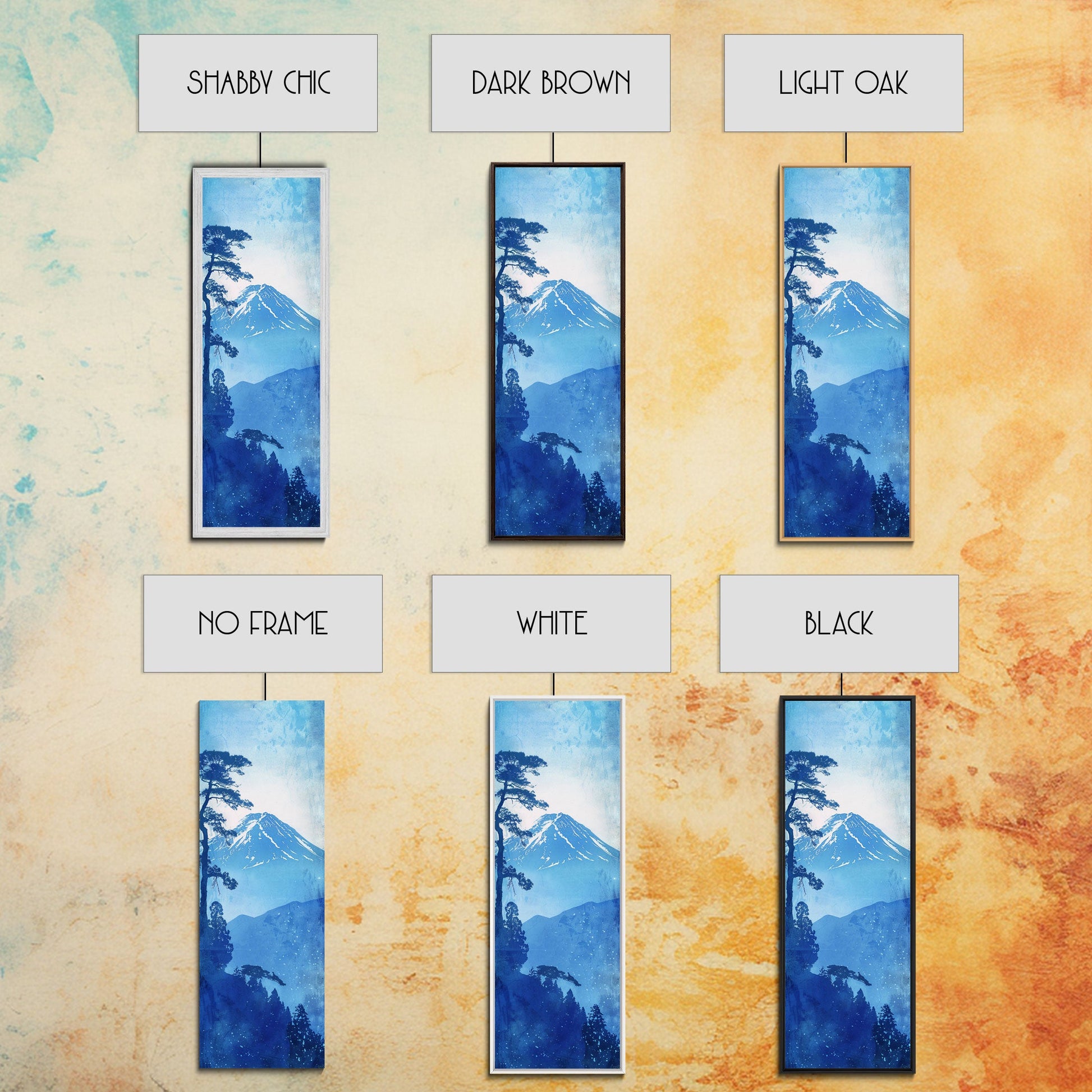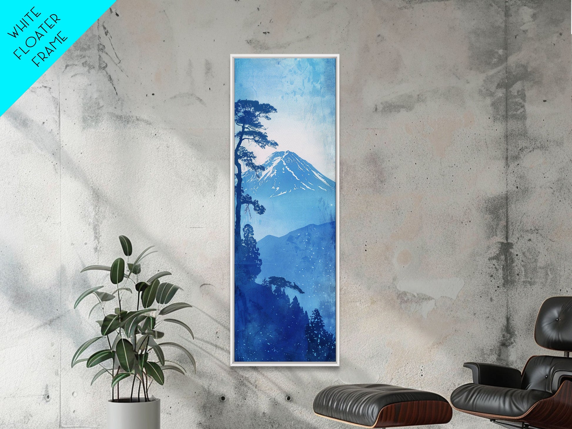 Skinny Art Tall Art Framed Canvas Print Japanese Style Art Blue Mount Fuji Forest Wood Block Print Ukiyo-e Feng Shui Wall Art