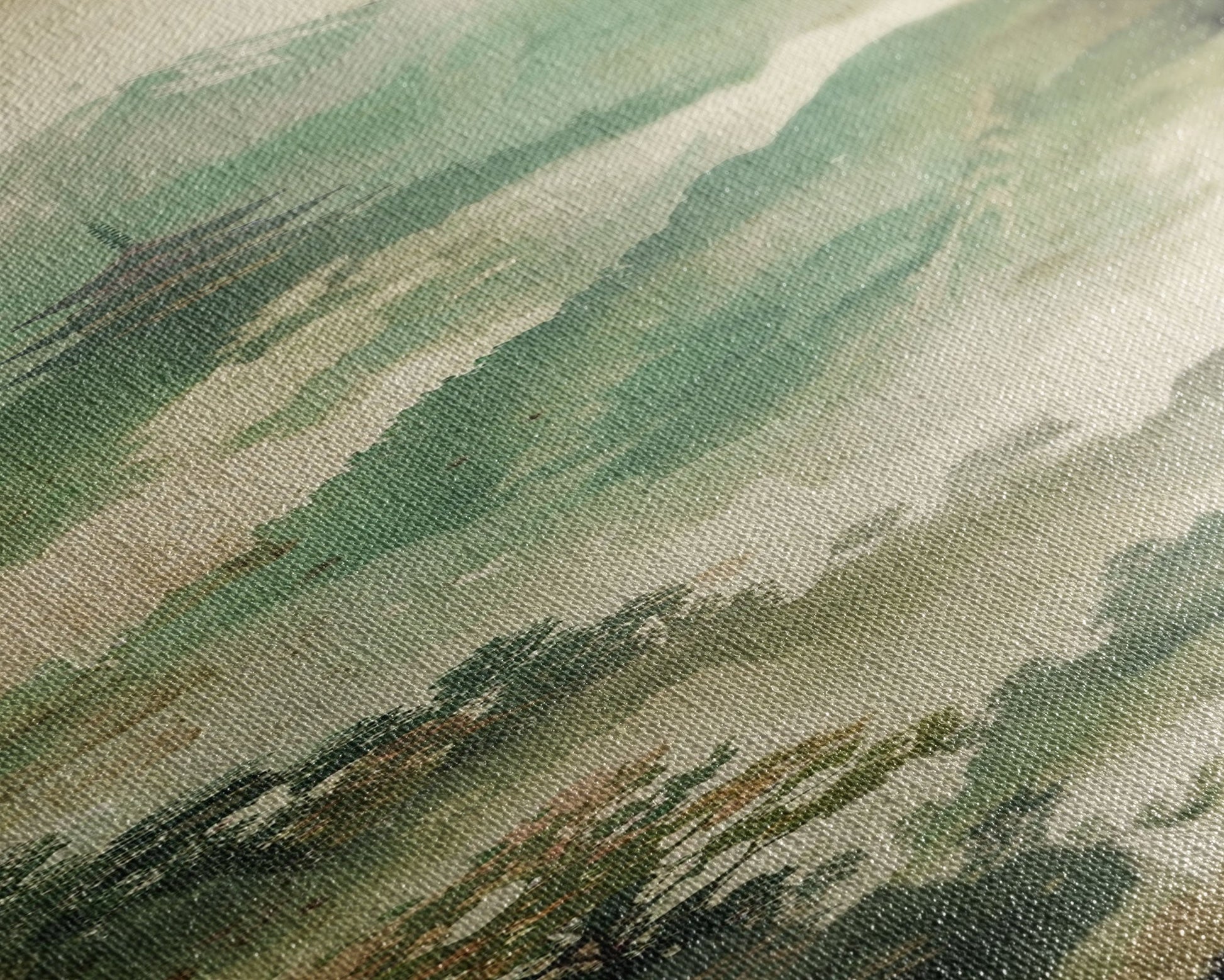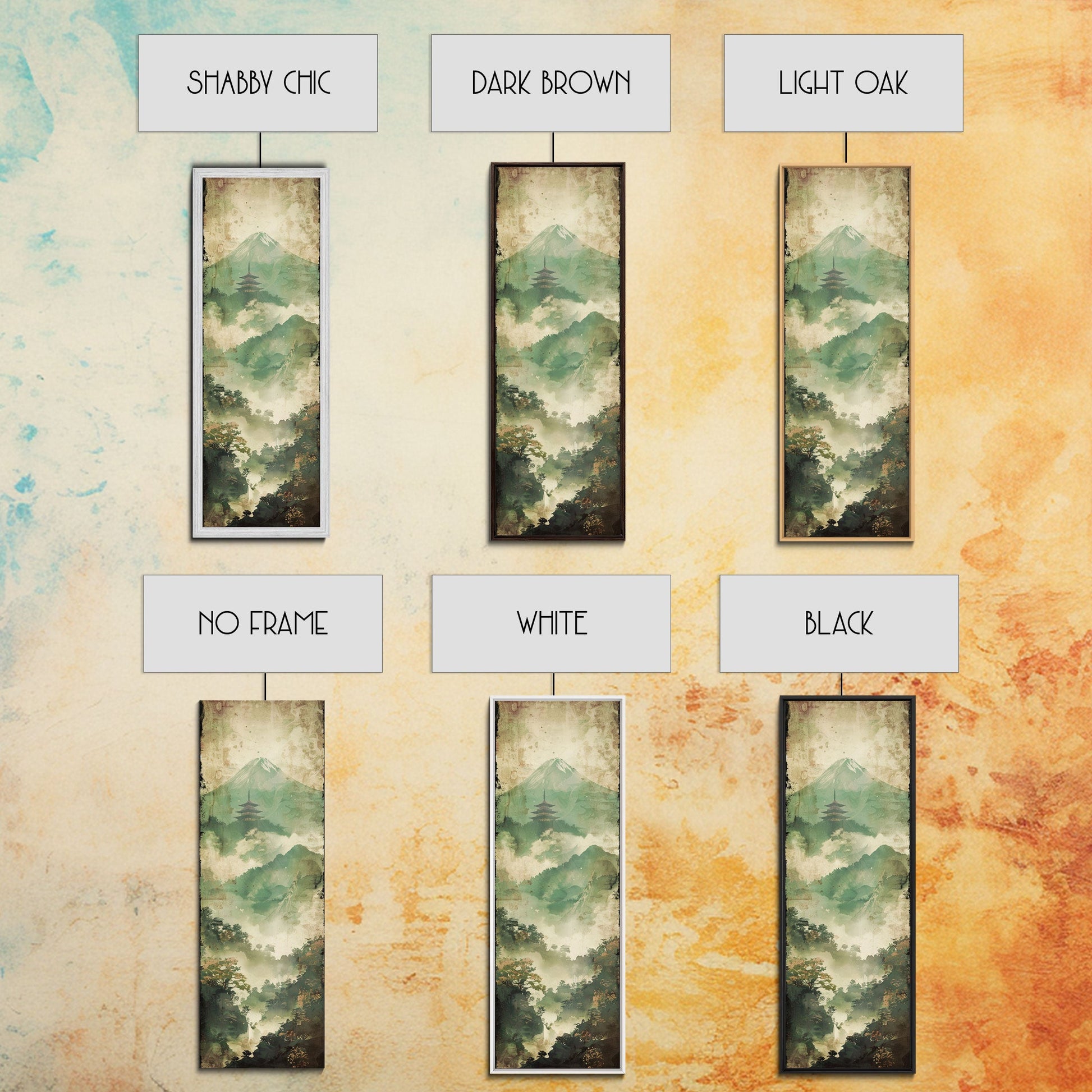 Skinny Art Tall Art Framed Canvas Print Japanese Style Art Foggy Mountain Temple Landscape Wood Block Print Ukiyo-e Feng Shui Wall Art