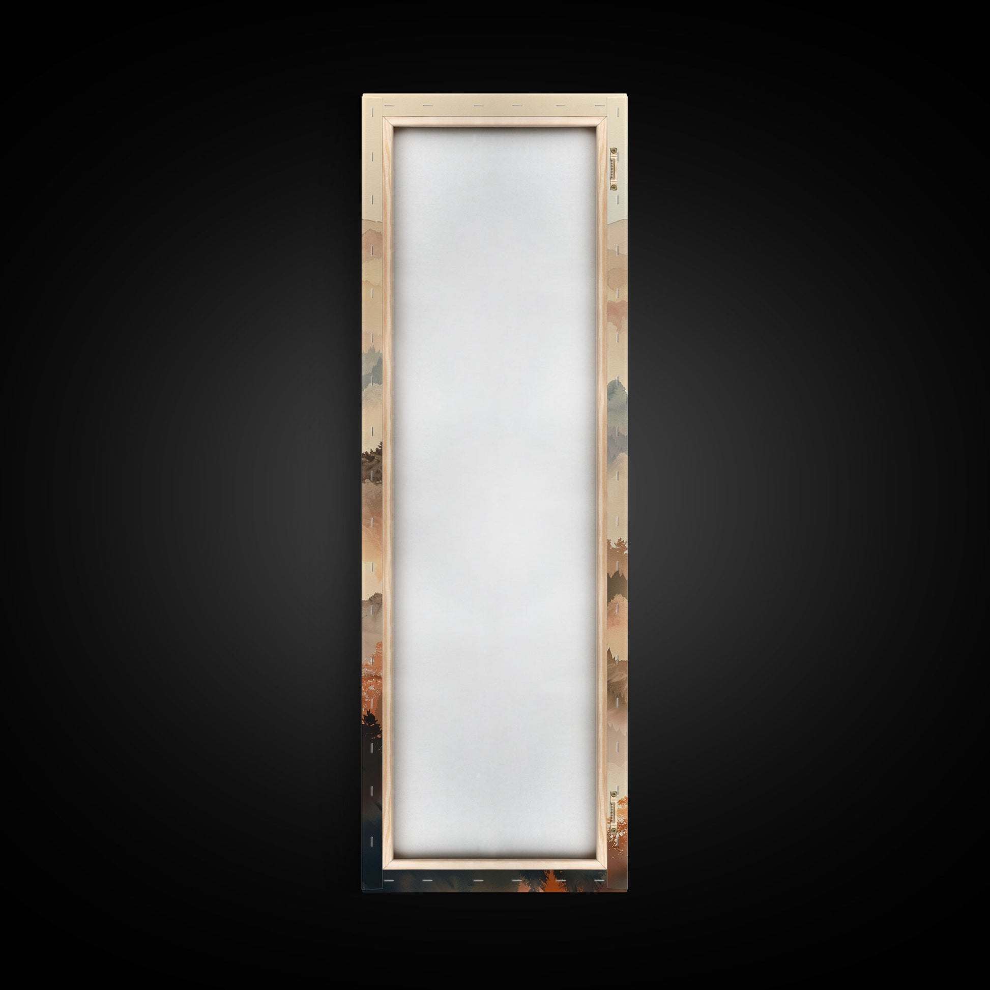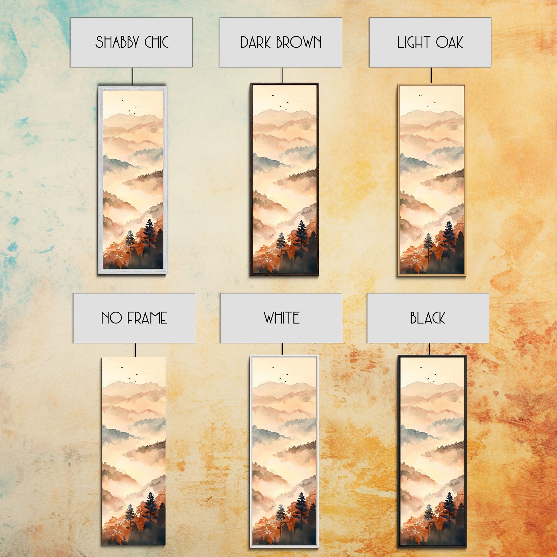 Skinny Art Tall Art Framed Canvas Print Layers Of Misty Mountains In Soft Warm Hues Ukiyo-e Japanese Style Art Wood Block Print