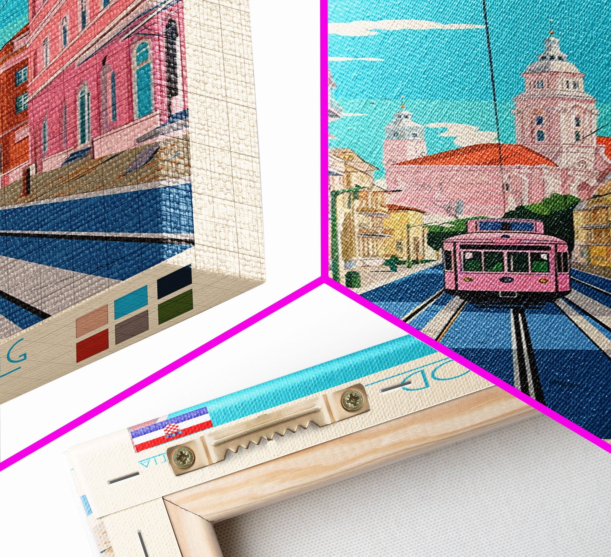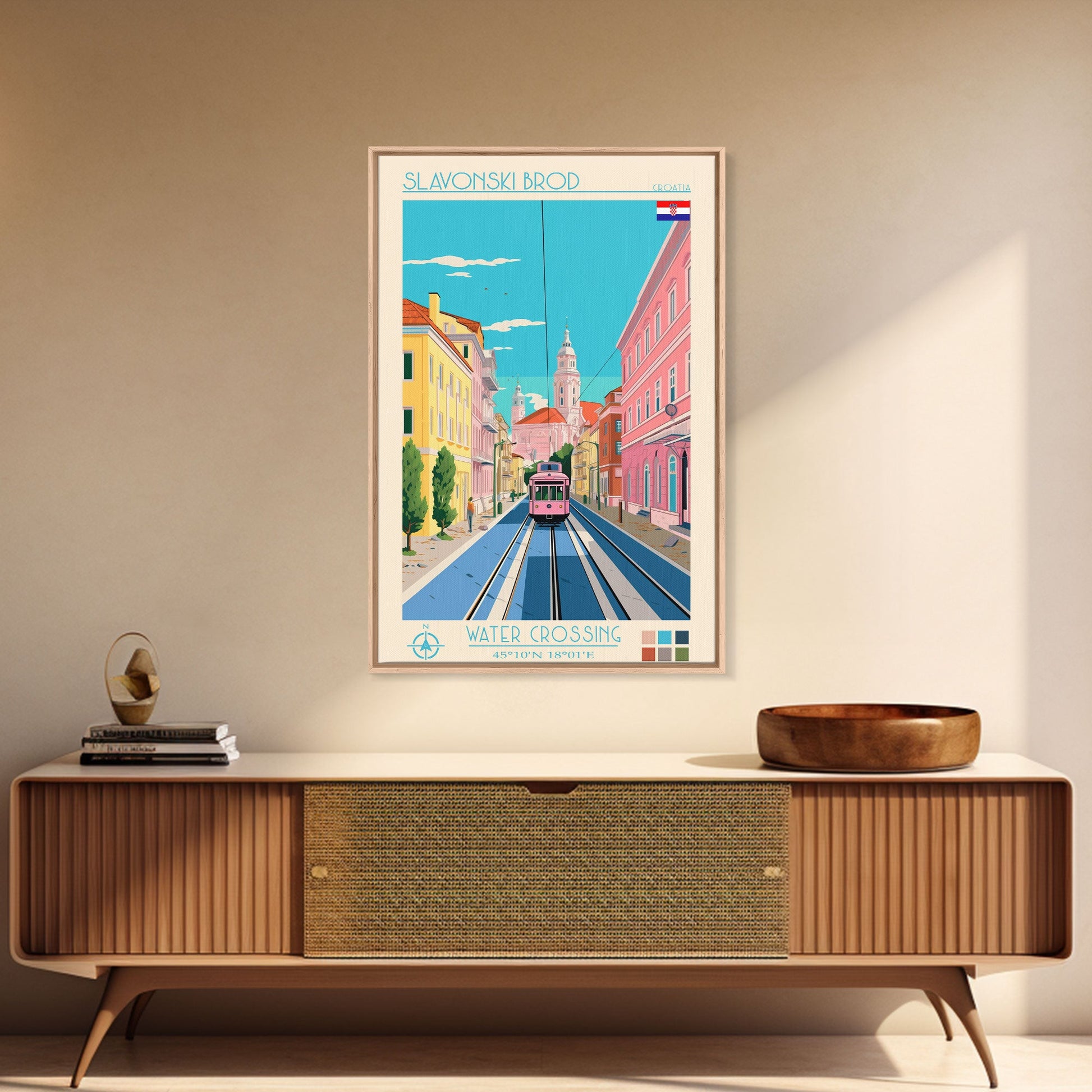 Slavonski Brod Croatia Travel Poster Framed Canvas Print, Midcentury Modern Art, Pop Art Wall Decor, Home Decor, Office Decoration