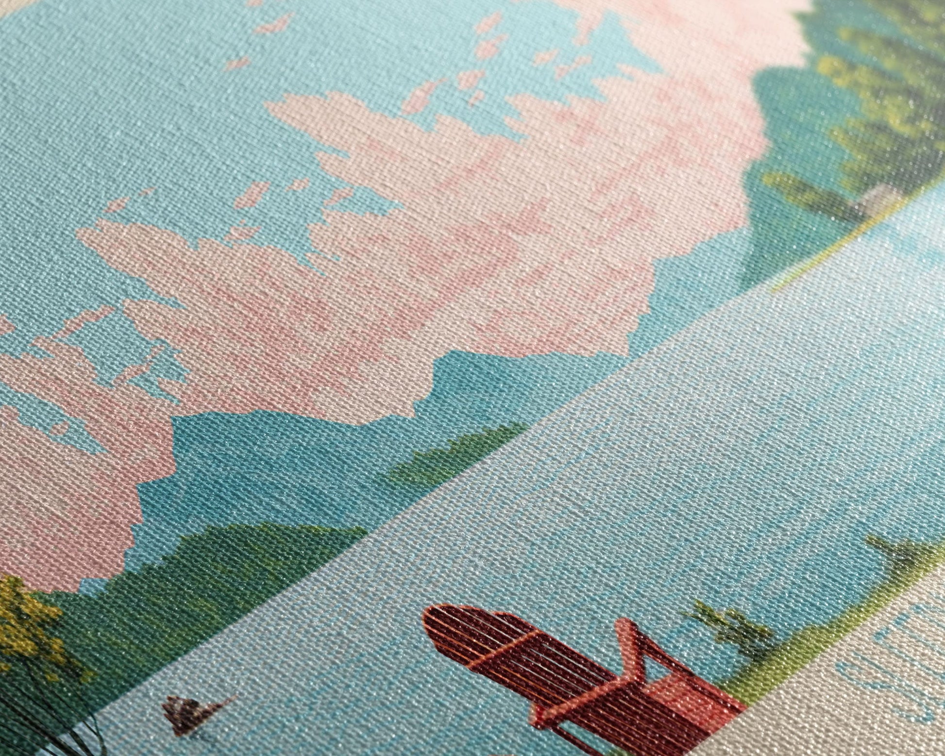 Sleepy Creek Lake, West Virginia Framed Canvas Print, Lake House Decor, Midcentury Modern Art, Pop Art, Travel Poster, Bedroom Wall Art