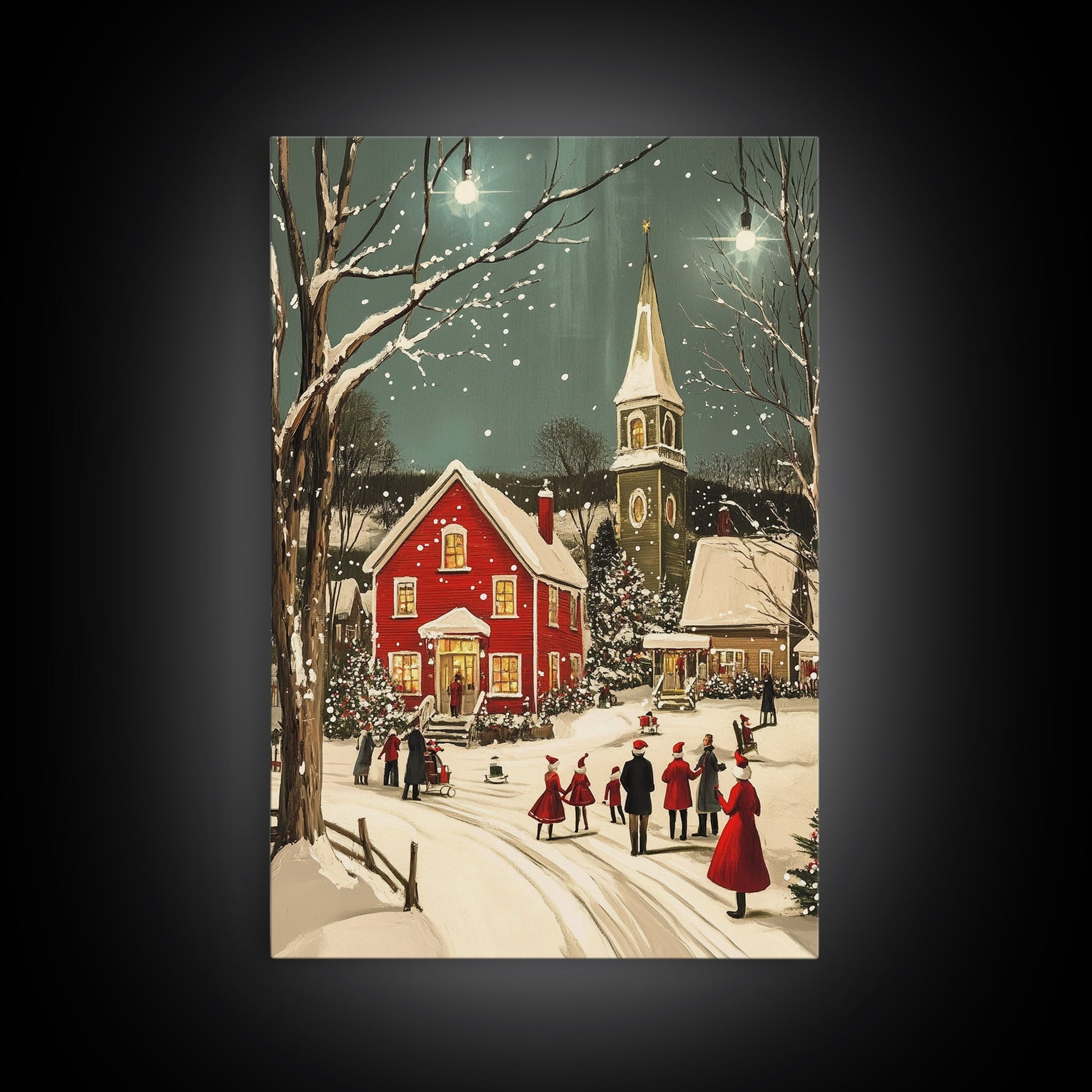 Small Town Christmas Painting Print, Christmas Village Art, Christmas Village Painting, Christmas Home Decor, Christmas Living Room Art