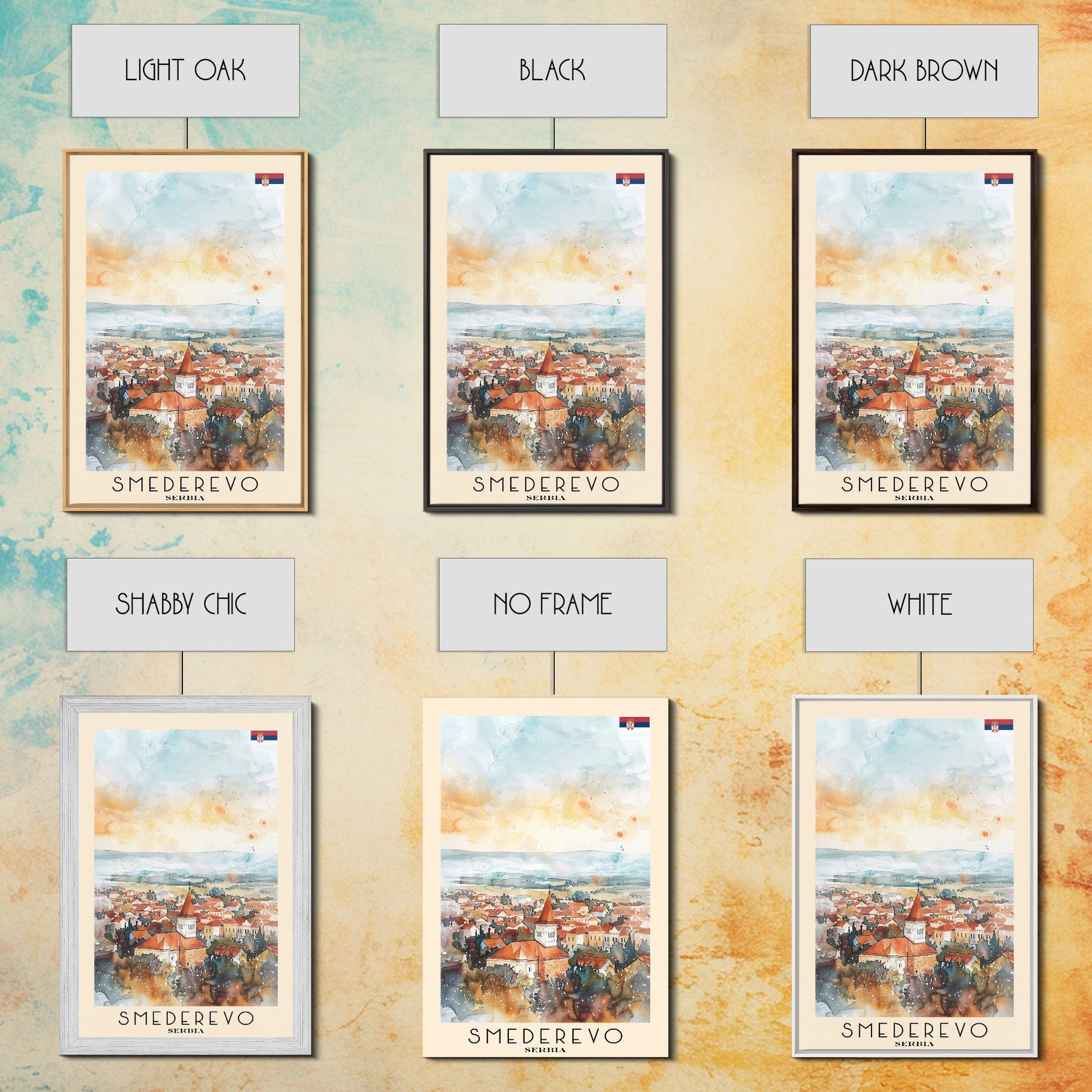 Smederevo Serbia Travel Poster Framed Canvas Print, Watercolor Painting, Scenic Wall Art, Home Decor, Serbian Cityscape, Modern Art