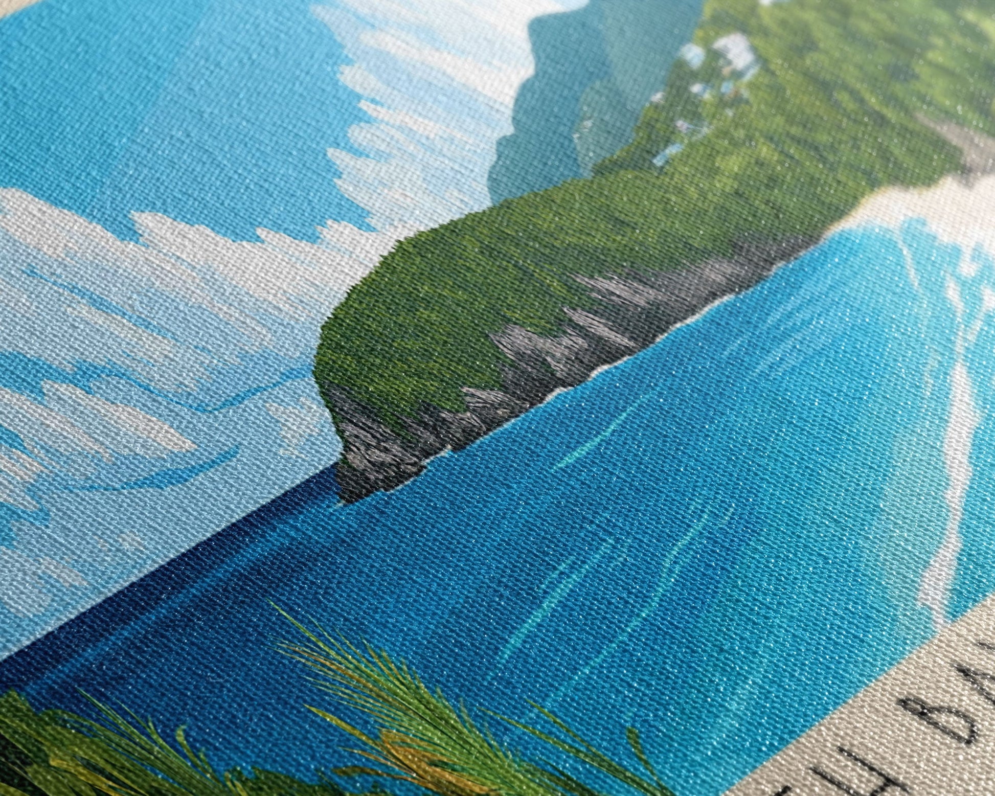 Most of our canvases are made in the USA, with the exception of canvases ordered with the light oak unstained frames, and any large canvases (24x48, 30x60, 16x48 and 20x60) ordered WITH a frame. These are temporarily made in and shipped from Europe, while we try to find a more consistent supplier in the USA.