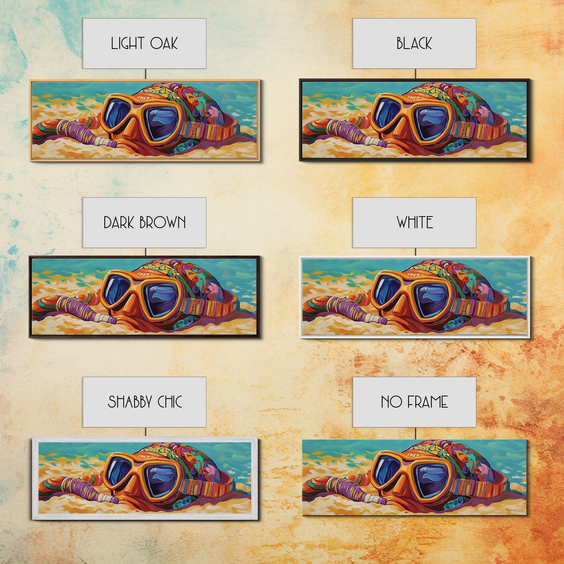 Snorkel Mask, Beach Fun, Vibrant Waves, Framed Canvas Print, Coastal Bathroom Wall Art, Bright Tropical Decor, Playful Ocean Art