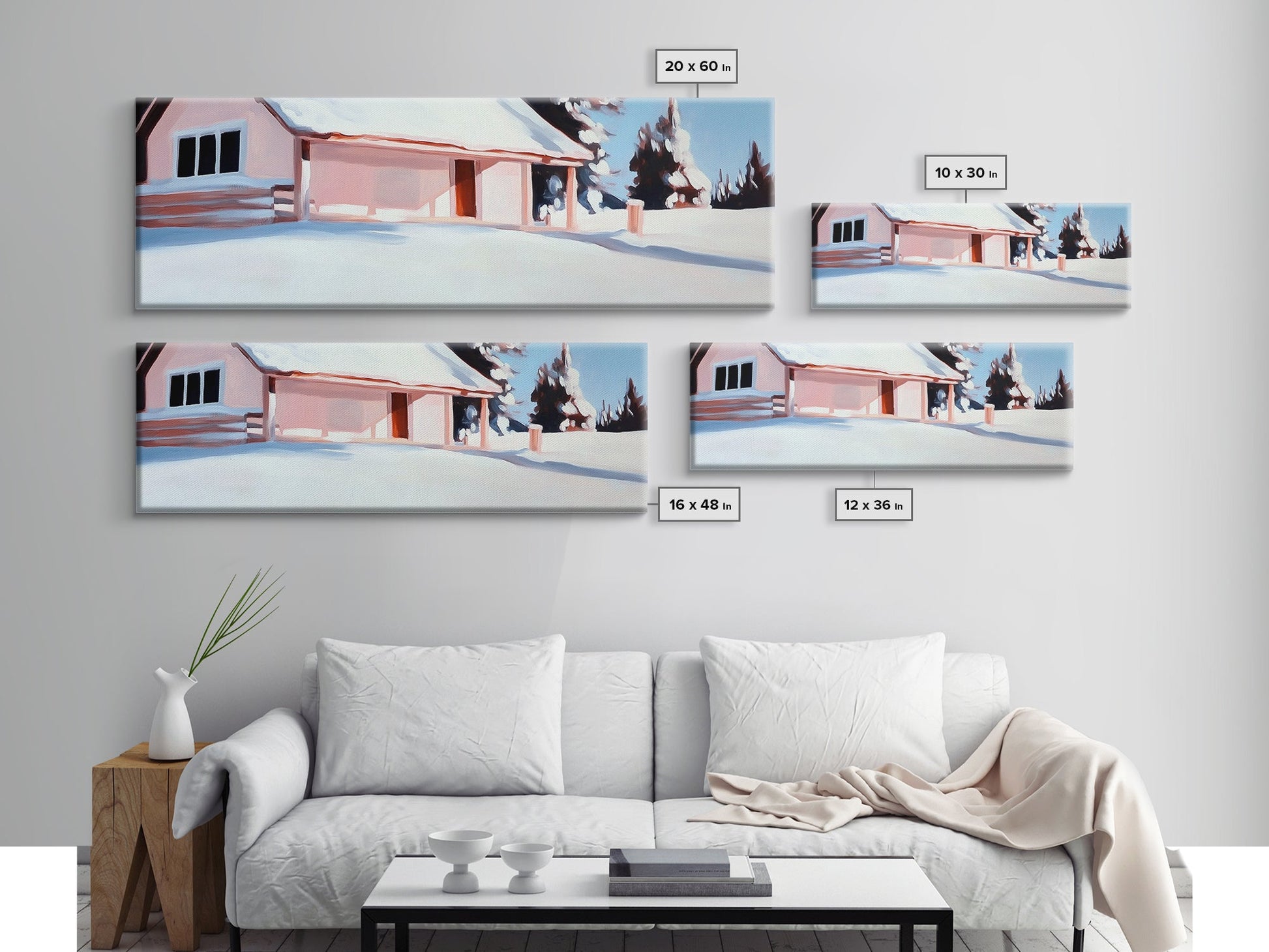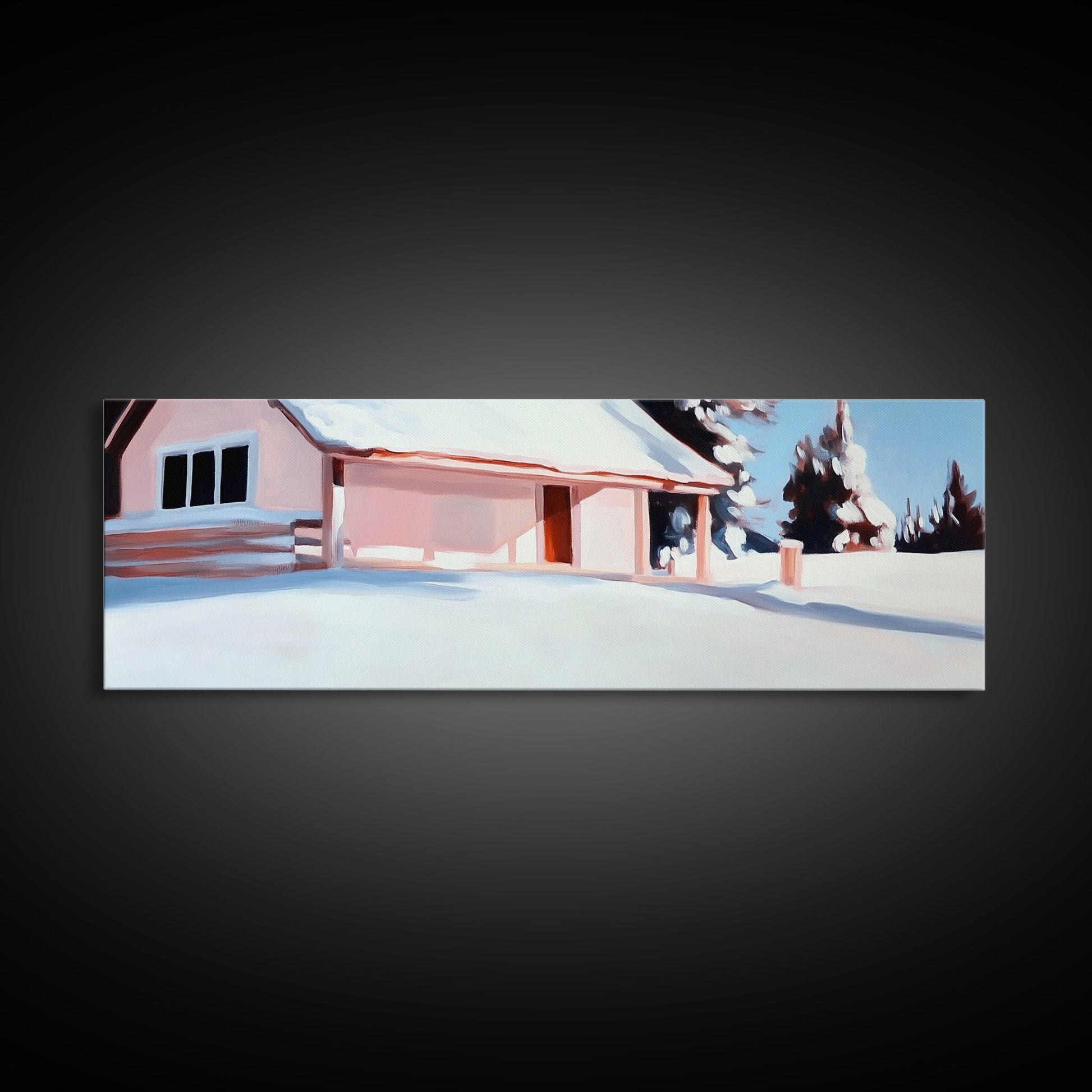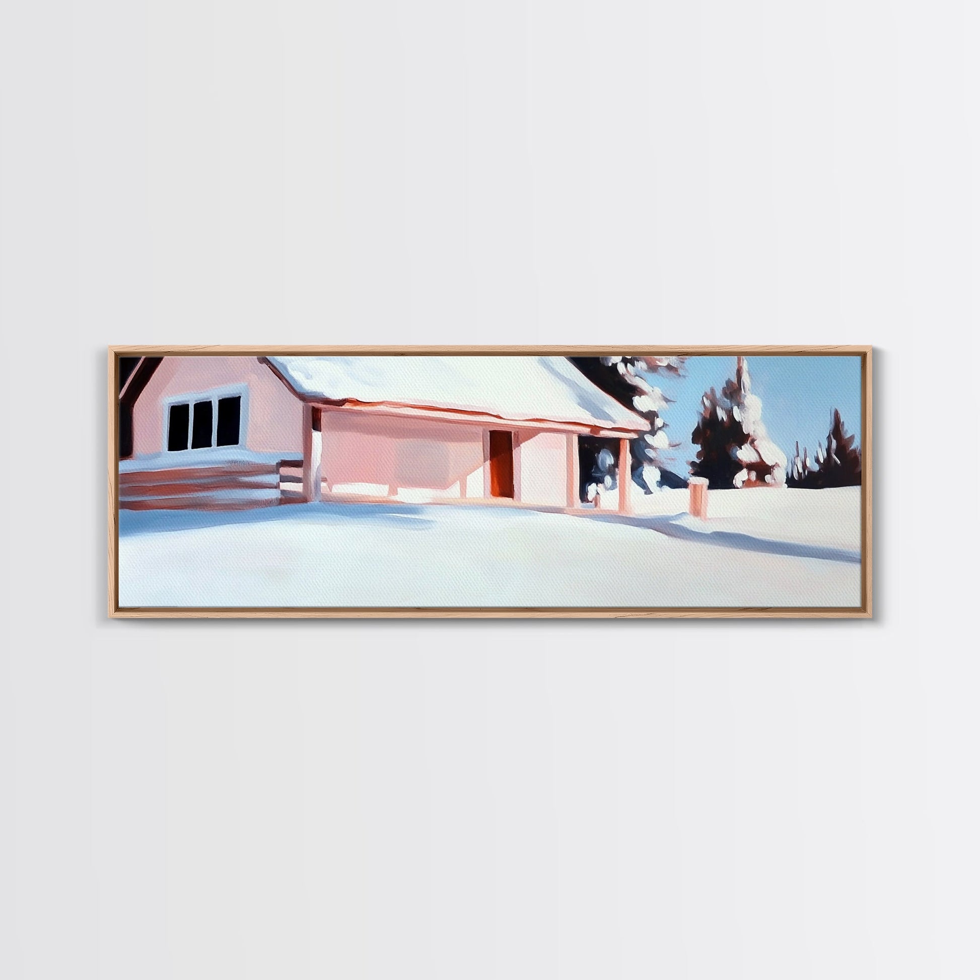 Snow Cabin, Winter Scene, Cozy Christmas Art, Framed Canvas Print, Rustic Home Decor, Holiday Wall Art, Winter Art, Mountain Retreat