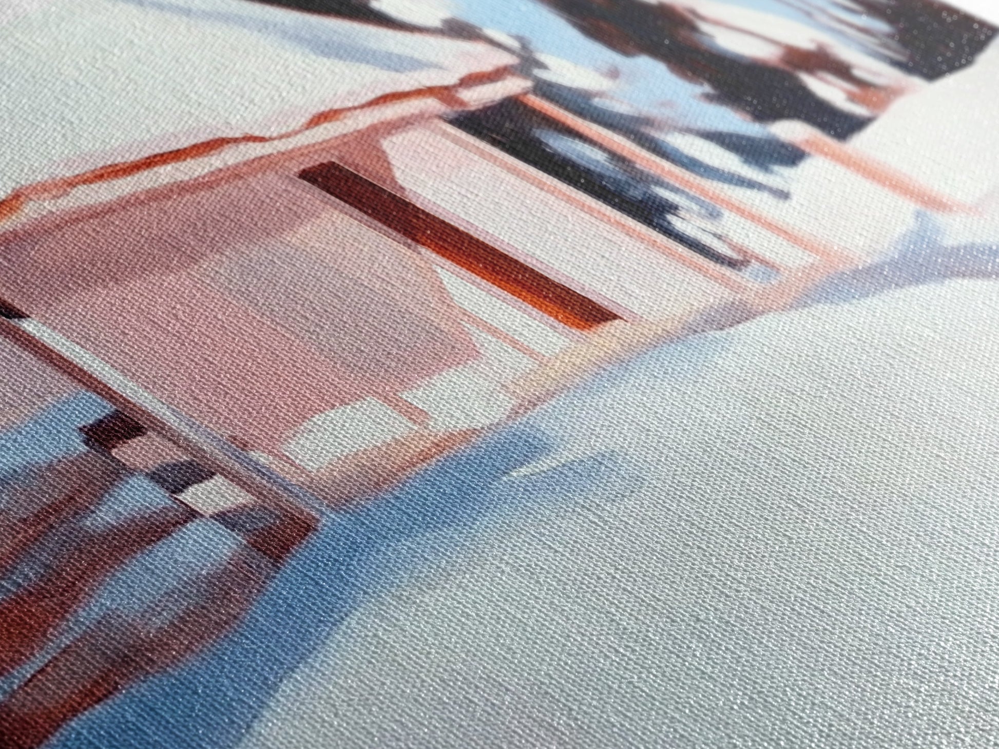 Most of our canvases are made in the USA, with the exception of canvases ordered with the light oak unstained frames, and any large canvases (24x48, 30x60, 16x48 and 20x60) ordered WITH a frame. These are temporarily made in and shipped from Europe, while we try to find a more consistent supplier in the USA.