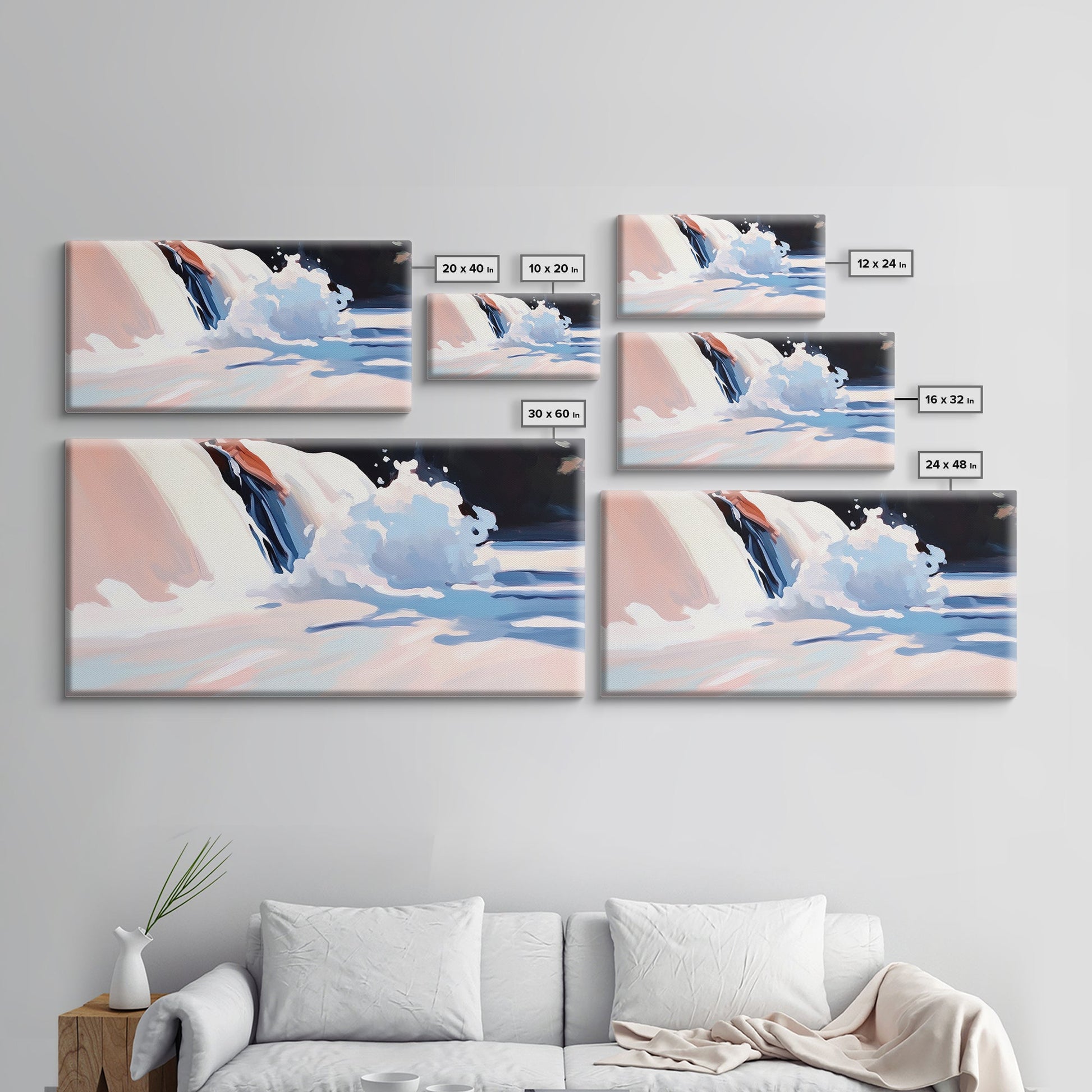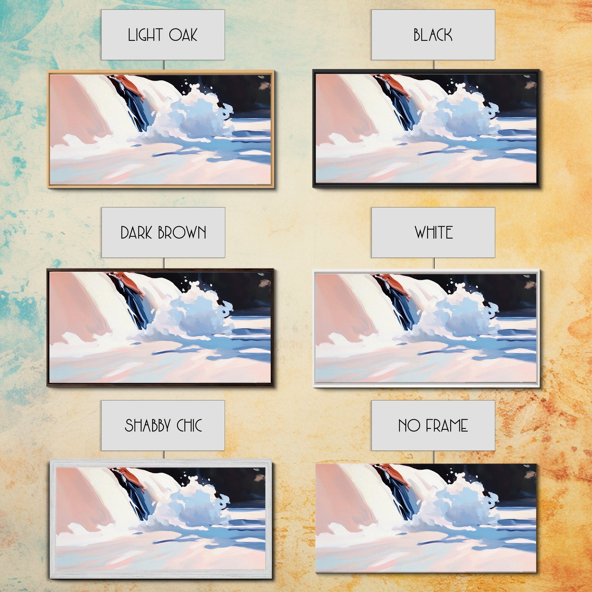 *Optional frames add a total of 1.5 inches to each dimension, for example a 10x20 canvas with a frame will be 11.5 by 21.5 inches total. All framed canvas are 1.5" total depth.