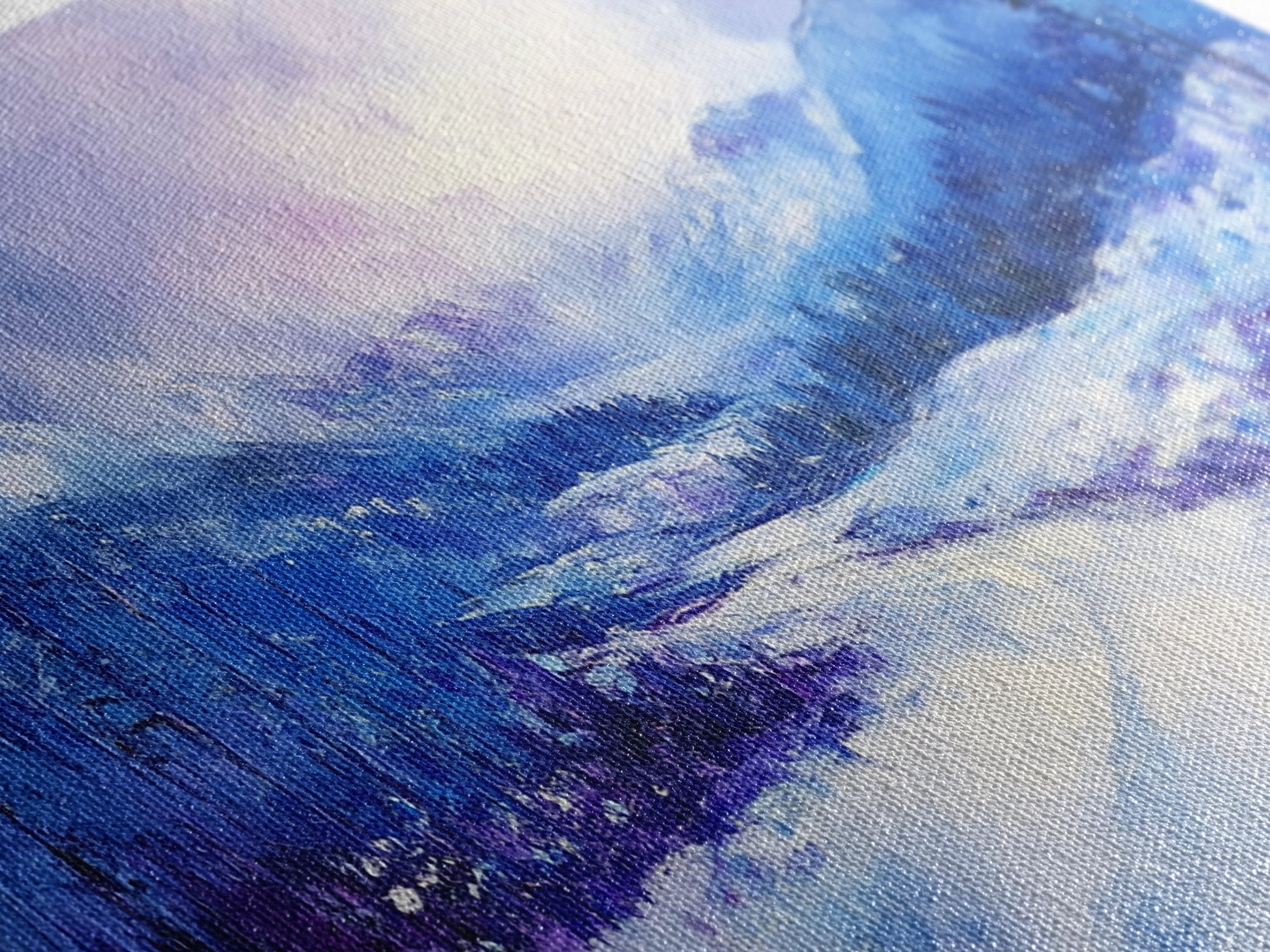 Most of our canvases are made in the USA, with the exception of canvases ordered with the light oak unstained frames, and any large canvases (24x48, 30x60, 16x48 and 20x60) ordered WITH a frame. These are temporarily made in and shipped from Europe, while we try to find a more consistent supplier in the USA.