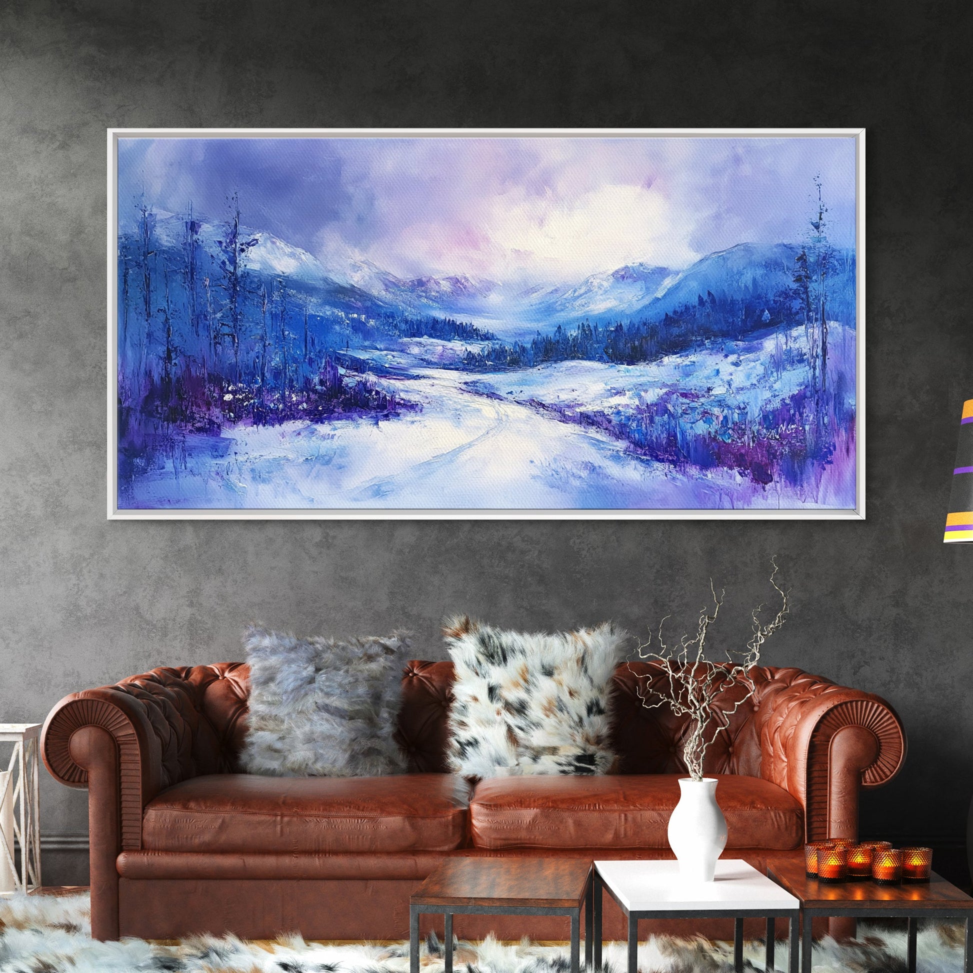 Snowy Mountain Art, Winter Landscape, Framed Canvas Print, Above Couch Art, Panoramic Painting, Mountain Painting