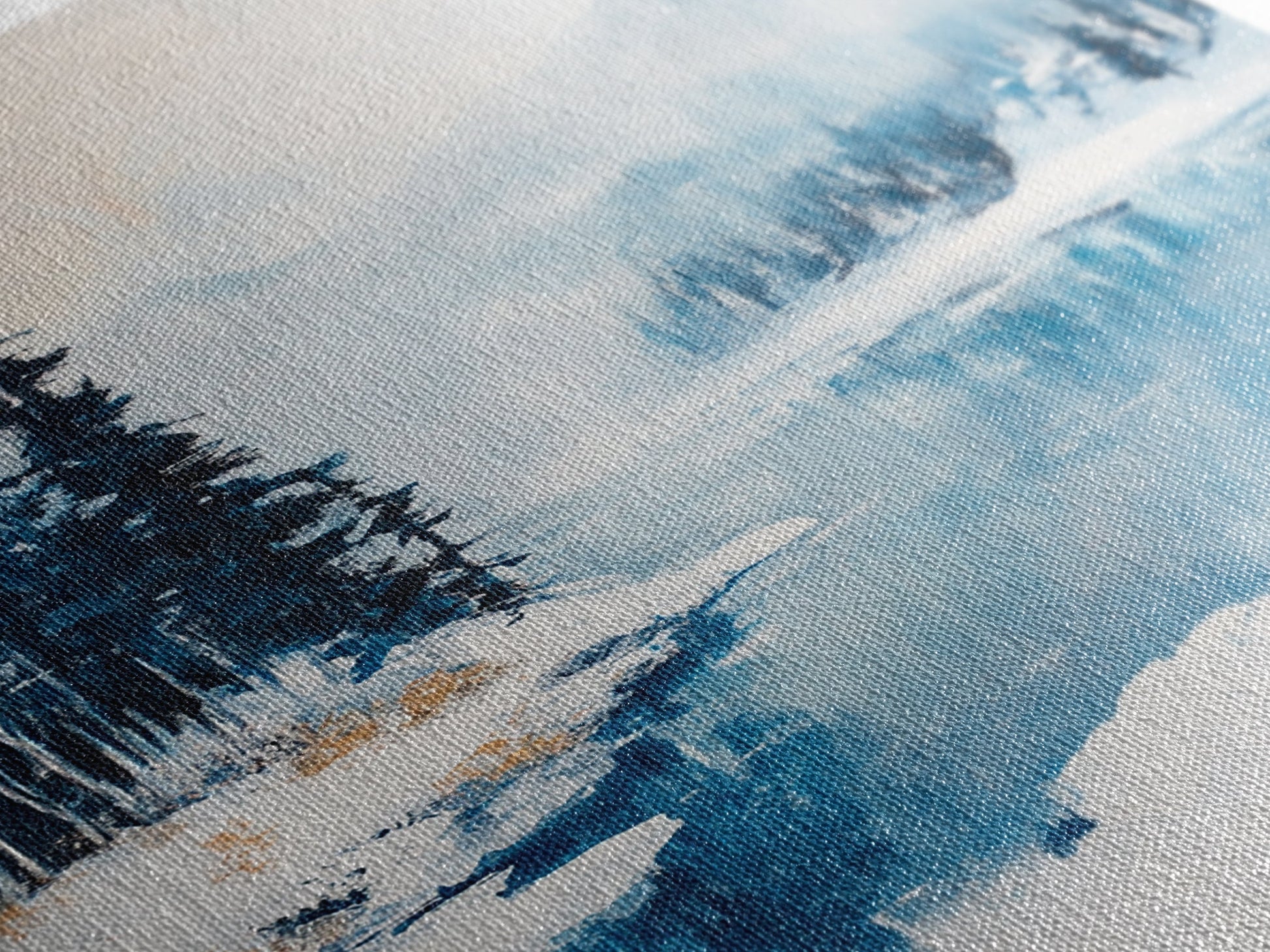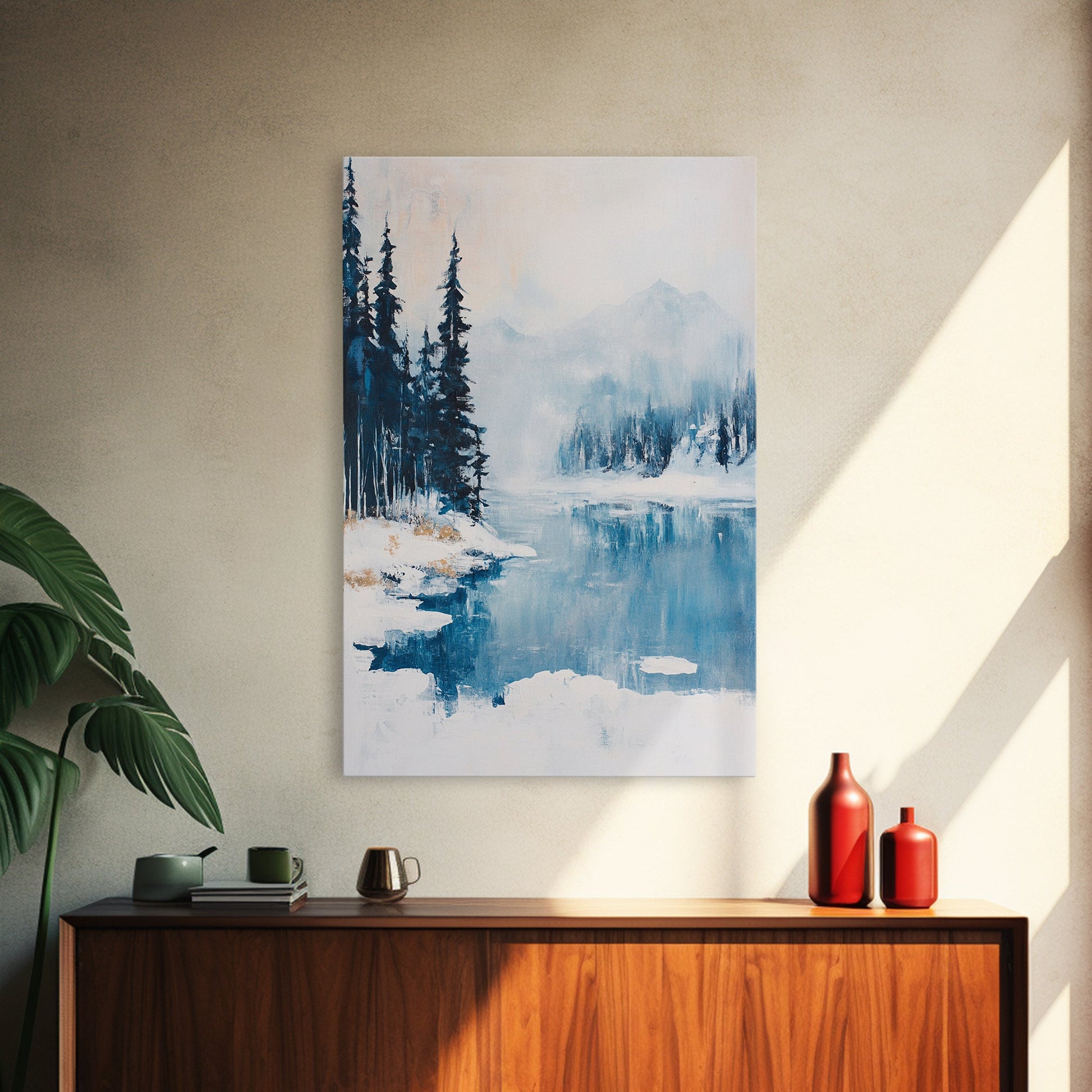 Snowy Mountain Scene, pine tree art, smoky mountain art, landscape painting, framed canvas print, rustic wall art, above sofa art