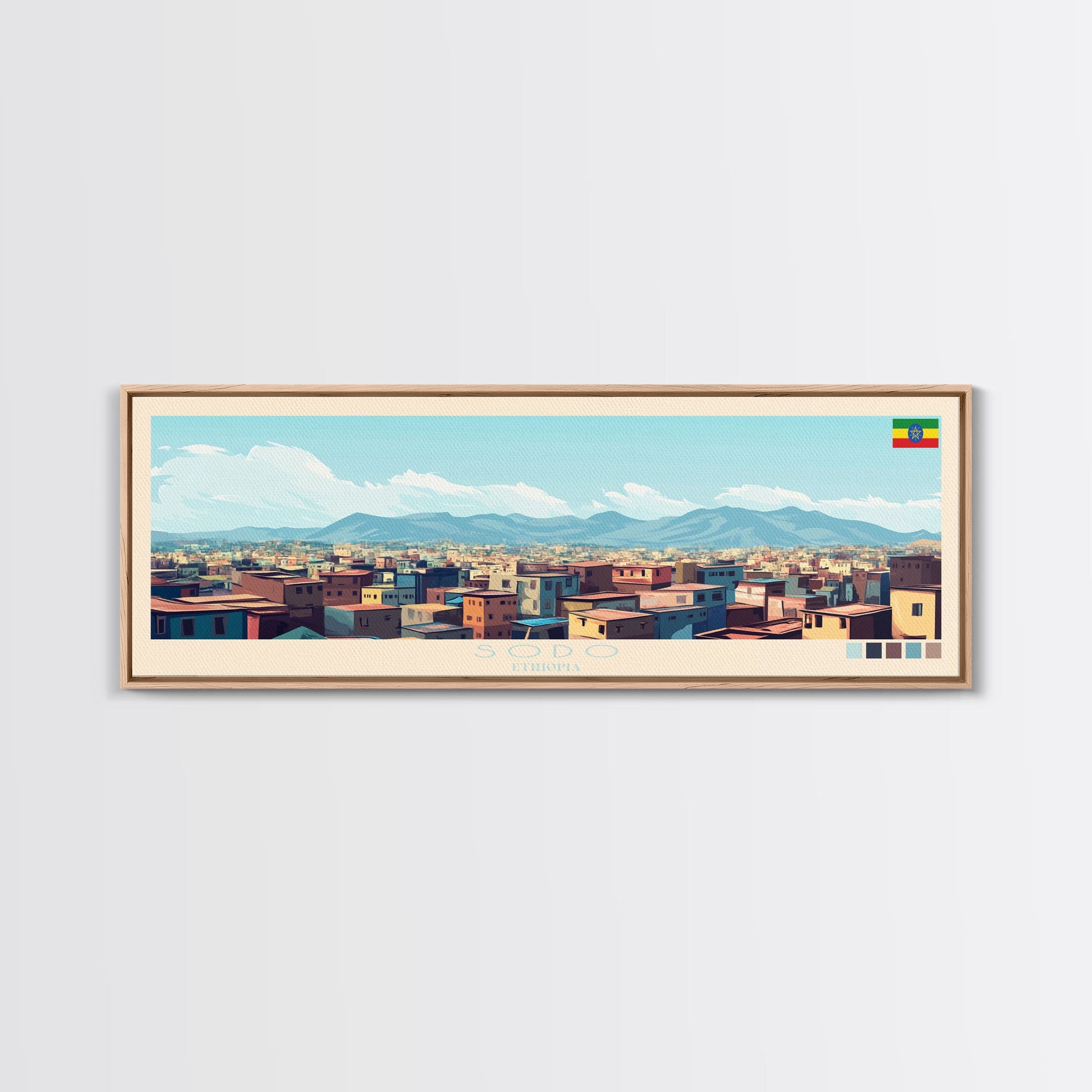 Sodo, Ethiopia Panoramic Travel Poster Canvas Print, Sodo, Ethiopia Painting, Ethiopia Art, Sodo Panoramic Travel Art, Travel Painting