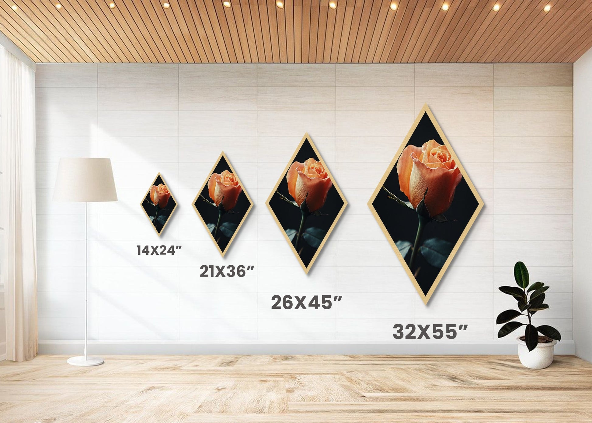 Soft Peach Rose Diamond Shaped Canvas Embossed Print, Floral Minimalist Wall Art, Romantic Moody Botanical Fine Decor