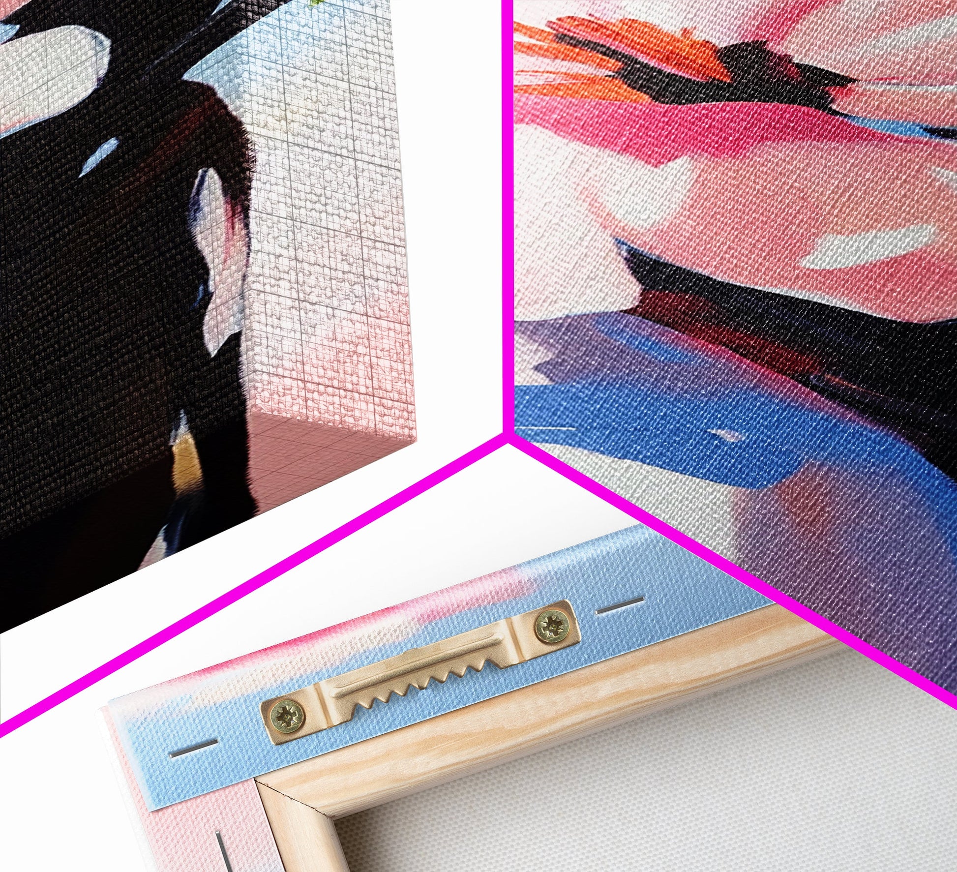 Hello and thank you for taking the time to view our modern high quality giclée artwork! We offer both posters and stretched canvas prints. Our posters are printed on Ultra Matte 60 lb / 230 GSM high quality photo paper, with a thickness of 10 mil. Our canvases are printed on museum grade 350 GSM canvas material with ECO friendly archival grade ink, then hand stretched and stapled over premium, FSC certified and shrink resistant frames. Designed and built to last a lifetime.