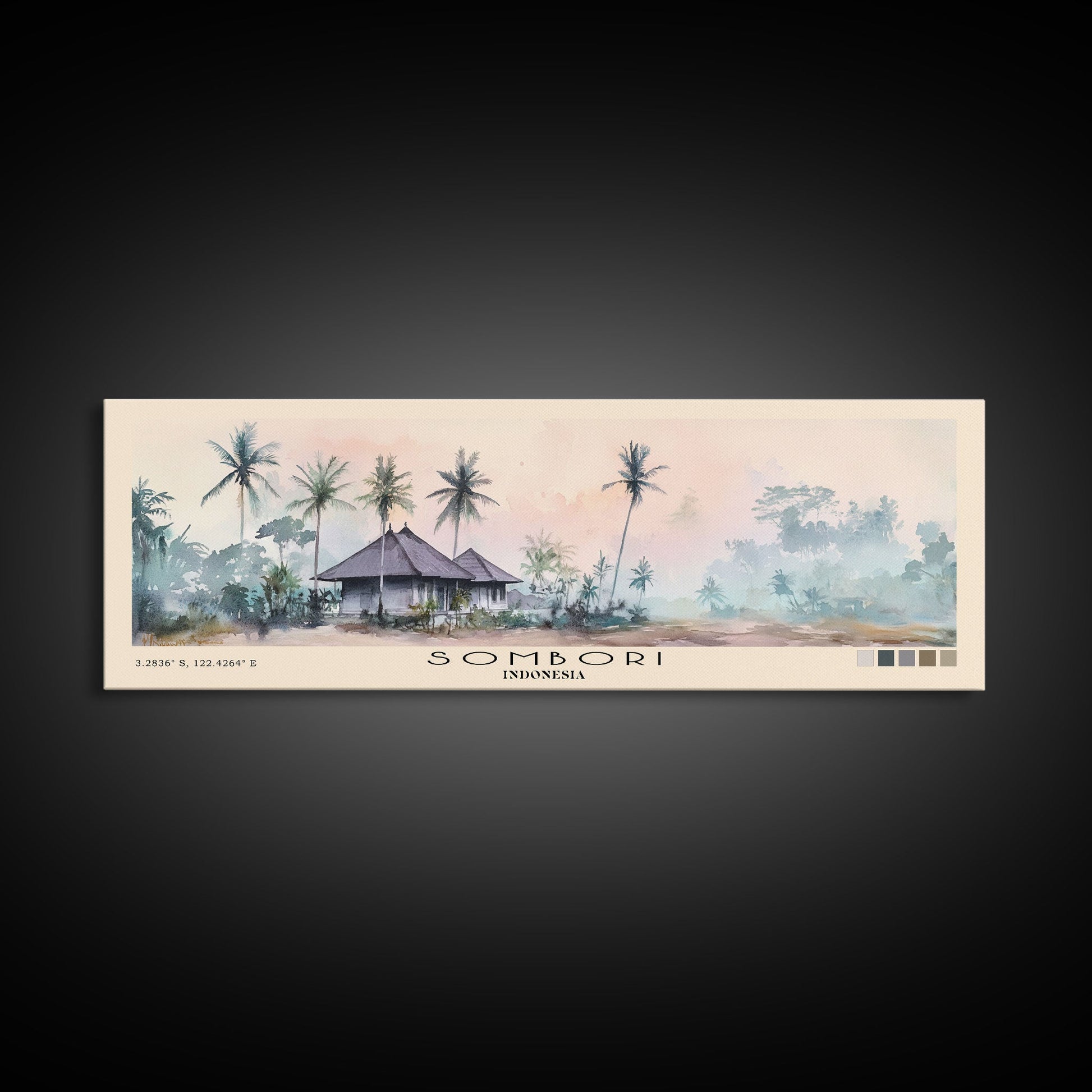Sombori, Indonesia Watercolor Beach Print, Vacation Gift, Indonesia Wall Art, Framed Canvas Print, Framed Beach Painting