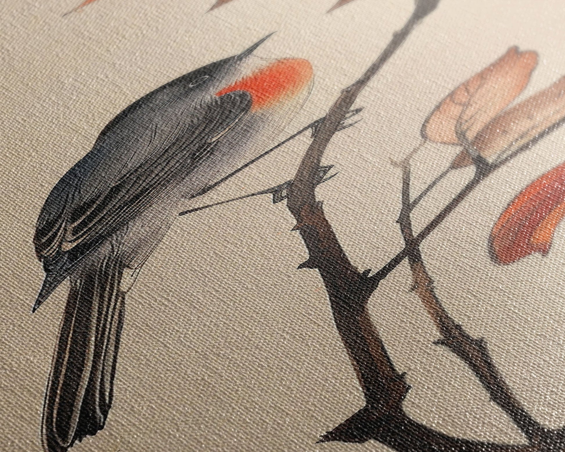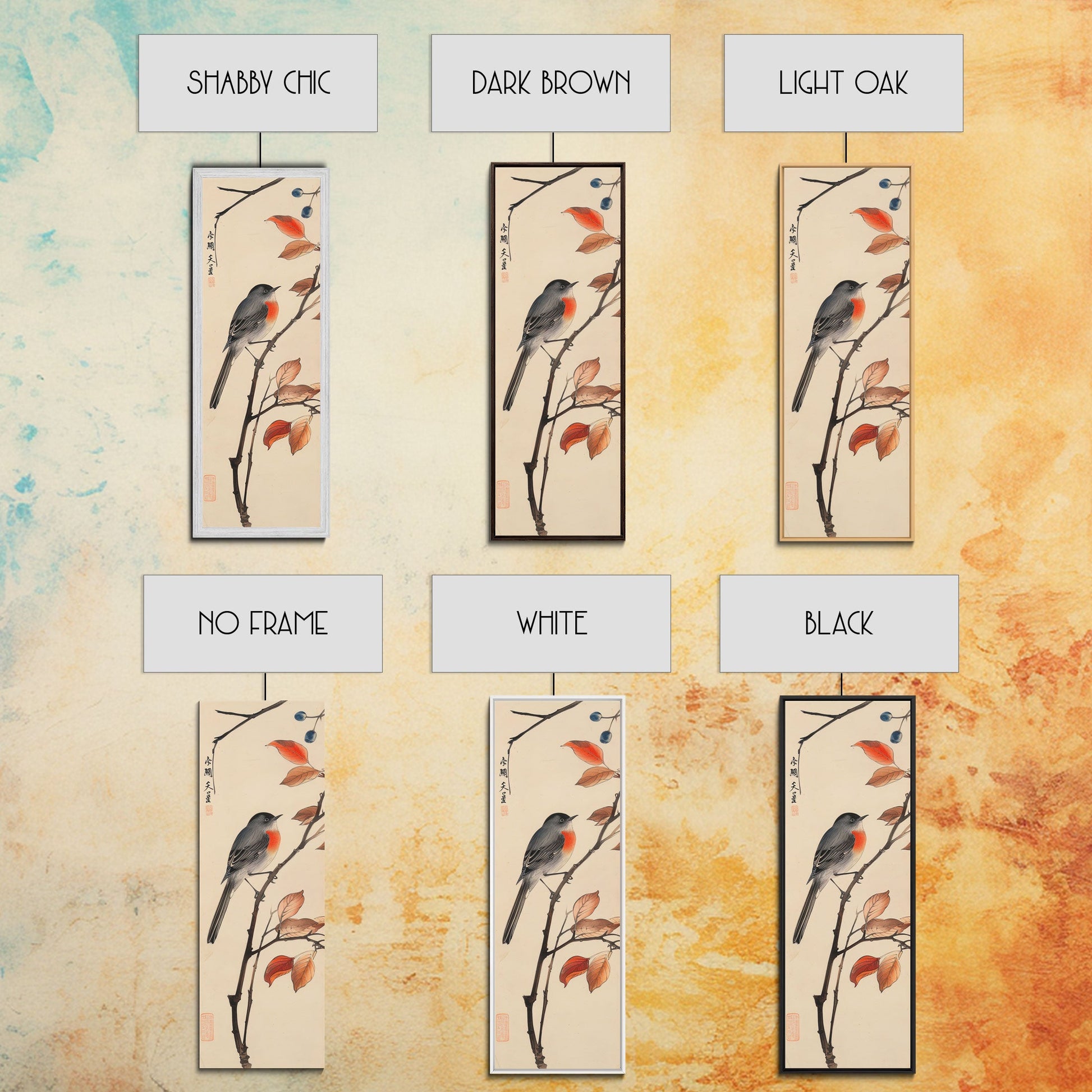 Songbird Perched On Branch With Autumn Leaves Skinny Art Wood Block Print Framed Canvas Print