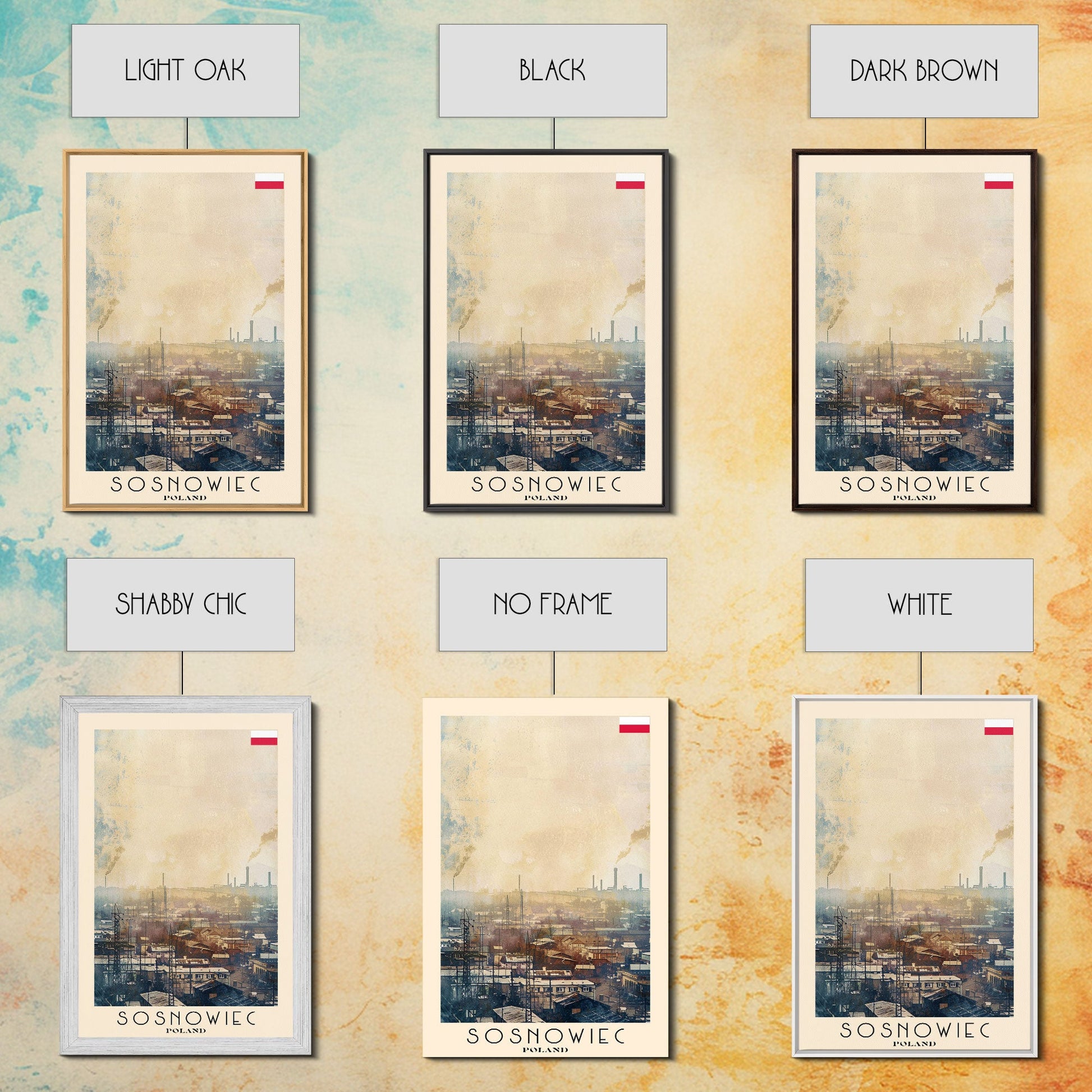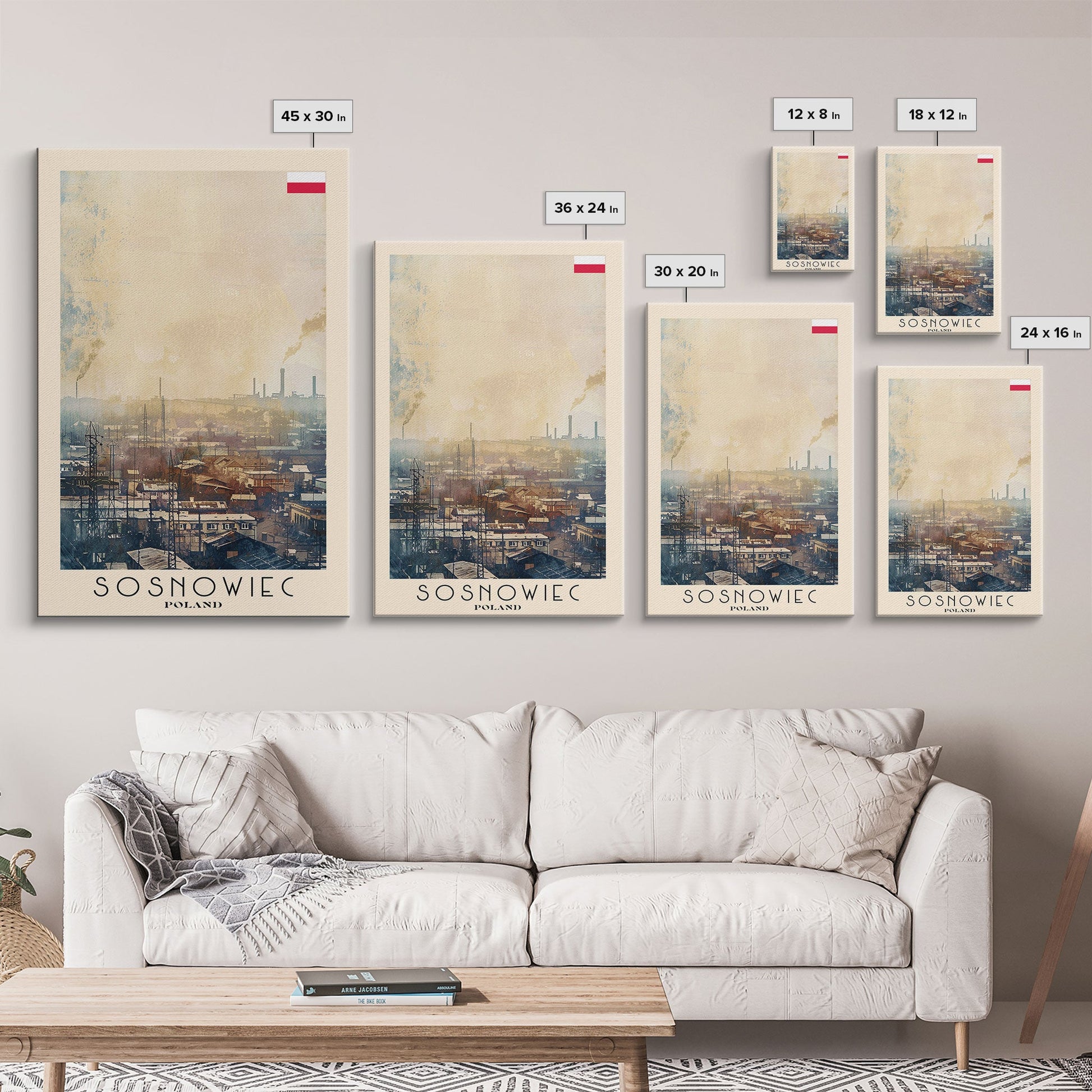 Sosnowiec Poland Travel Poster Framed Canvas Print, Watercolor Painting, Urban Wall Art, Home Decor, Polish Cityscape, Modern Art