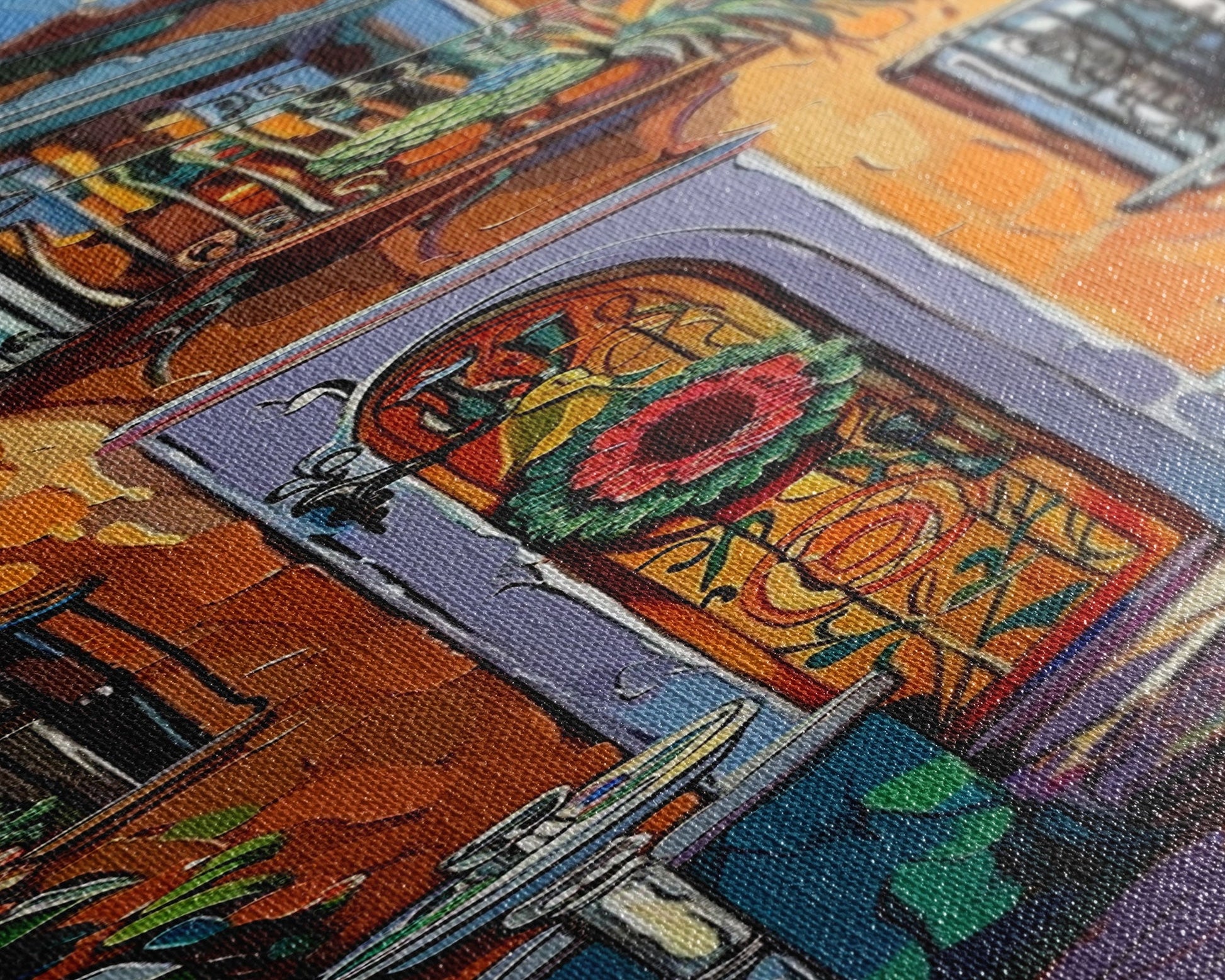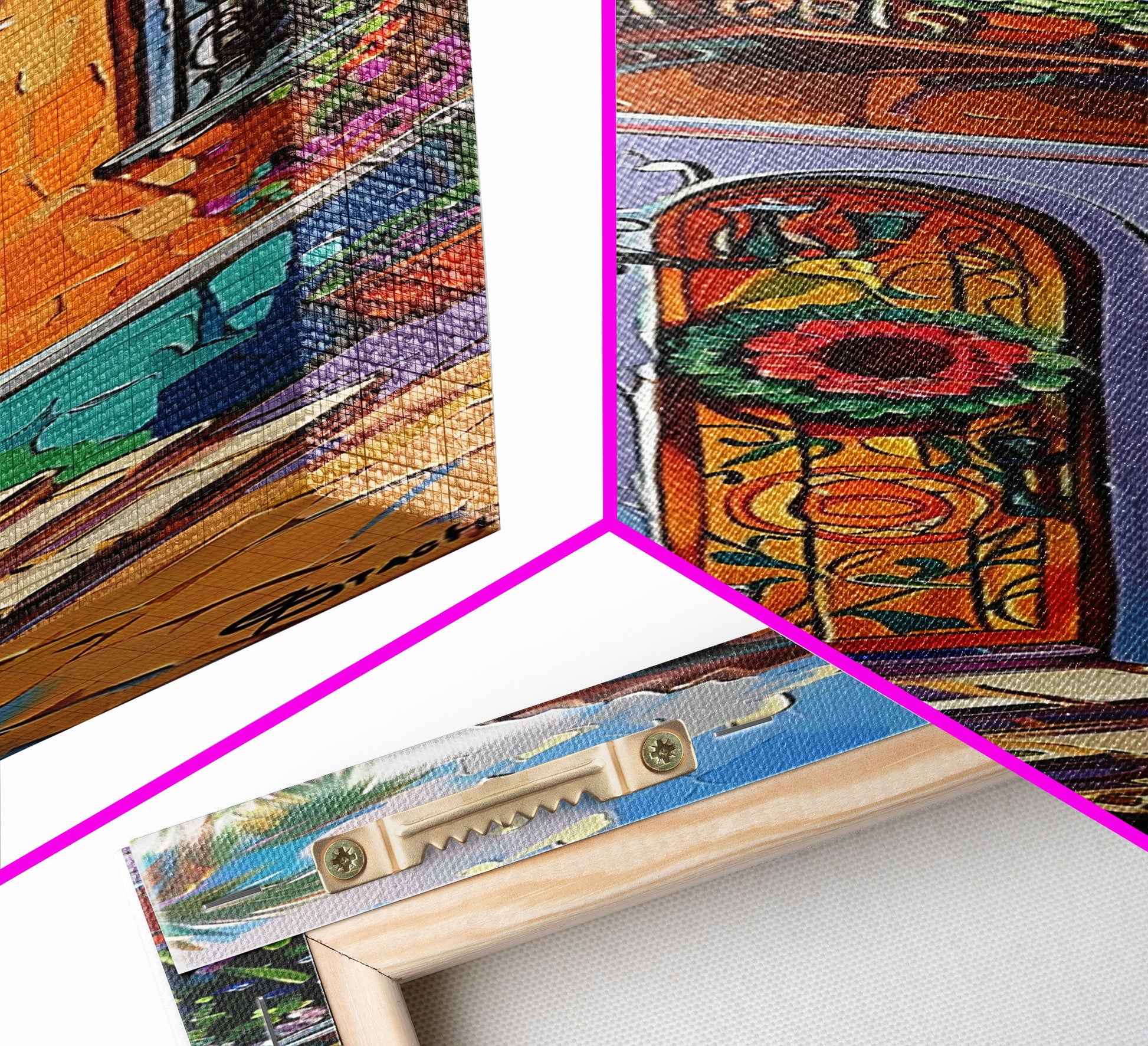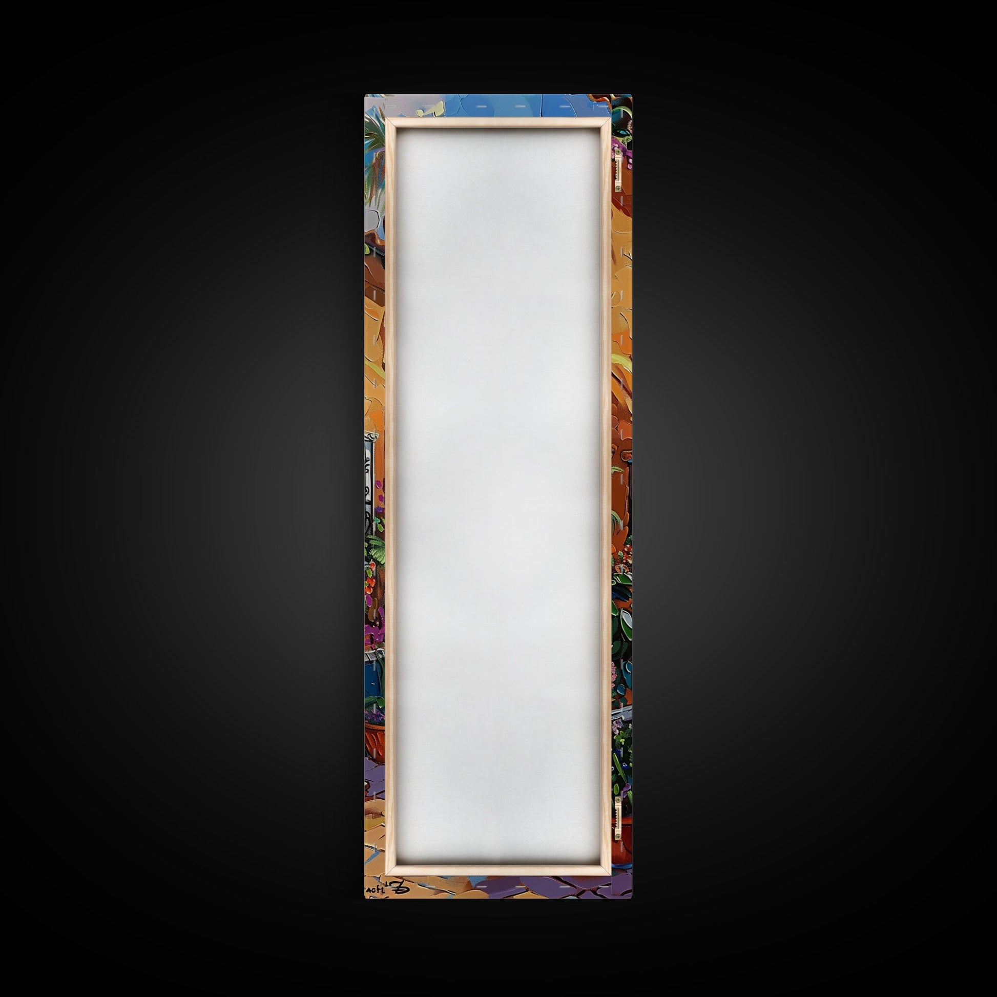 Spanish Inspired Acrylic Painting Framed and Printed on Canvas, Long and Narrow Vertical Art, Colorful Botanical Wall Art for Living Room