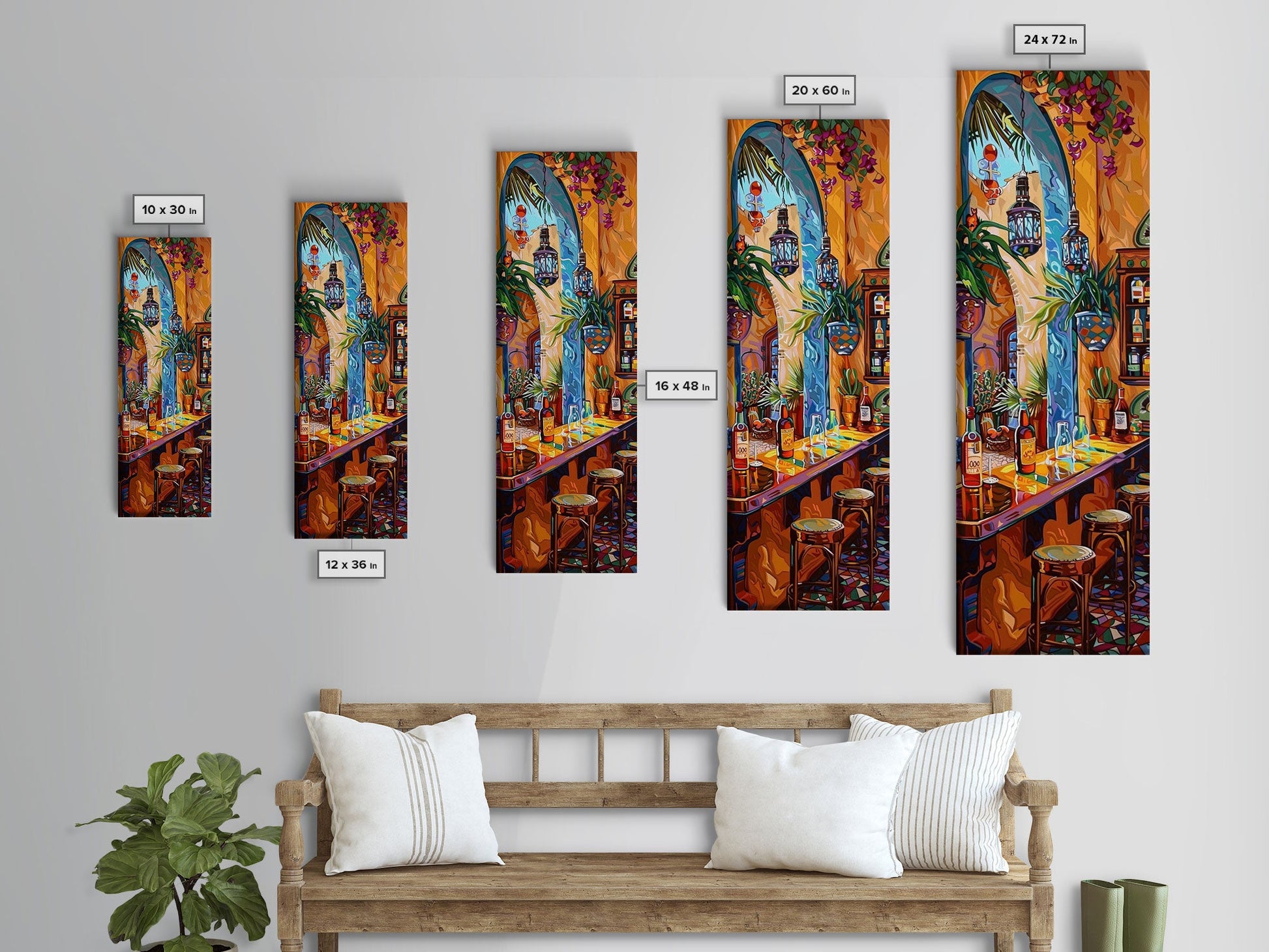 Spanish Inspired Bar Art Canvas Painting Framed, Still Life Art for Kitchen, Abstract Oil Painting, Vertical Framed Wall Art for Kitchen