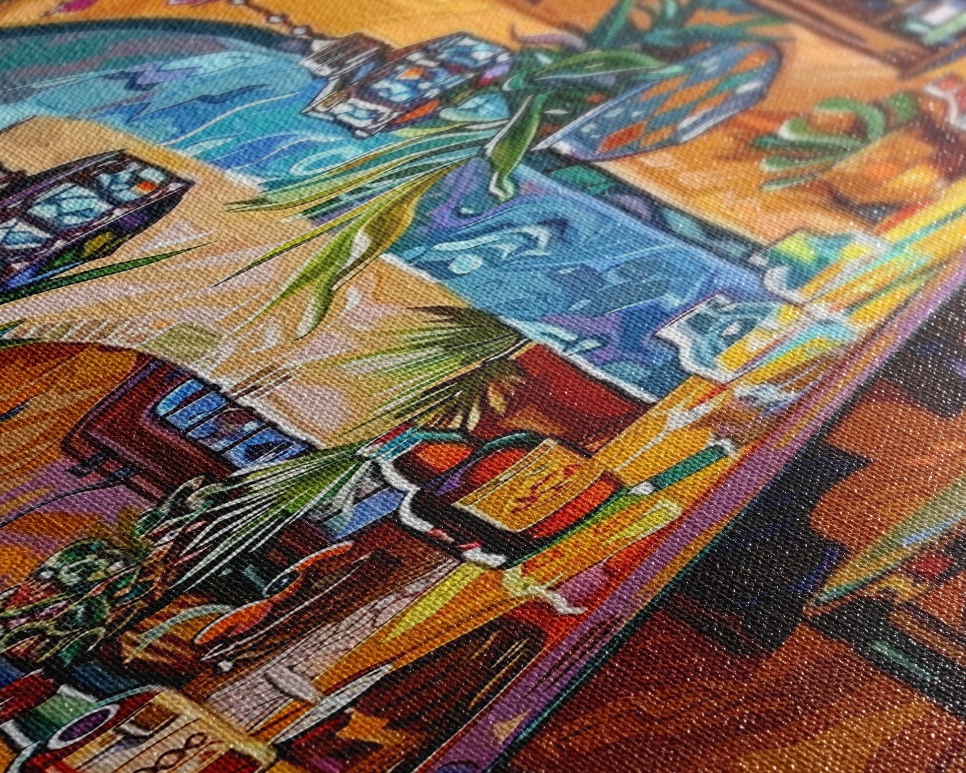Most of our canvases are made in the USA, with the exception of canvases ordered with the light oak unstained frames, and any large canvases (24x48, 30x60, 16x48 and 20x60) ordered WITH a frame. These are temporarily made in and shipped from Europe, while we try to find a more consistent supplier in the USA.
