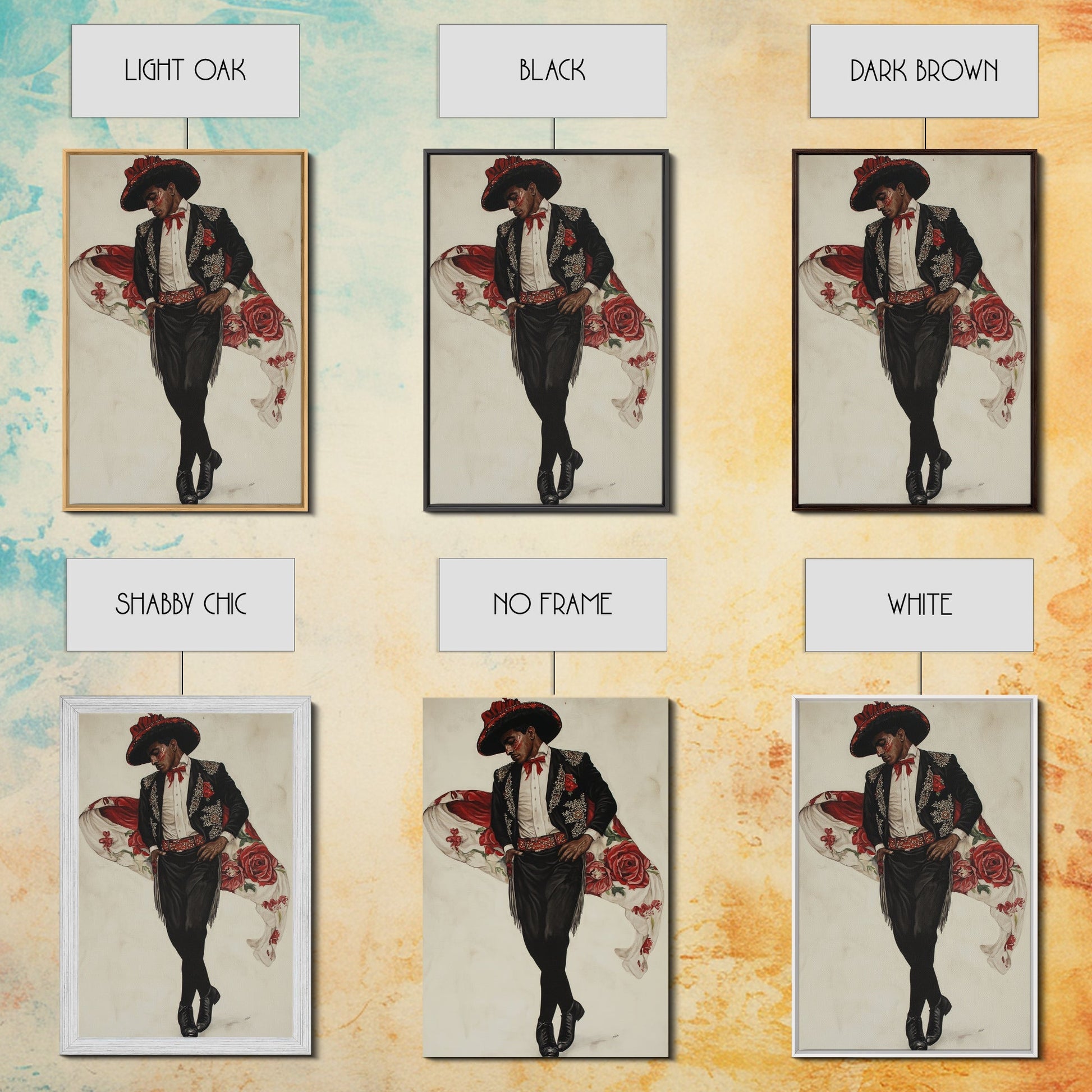 Spanish Toreador Framed Canvas Print, Impressionist Wall Art, Mexicano Wall Art, Spanish Decor, Spanish Wall Art, Cultural Decor