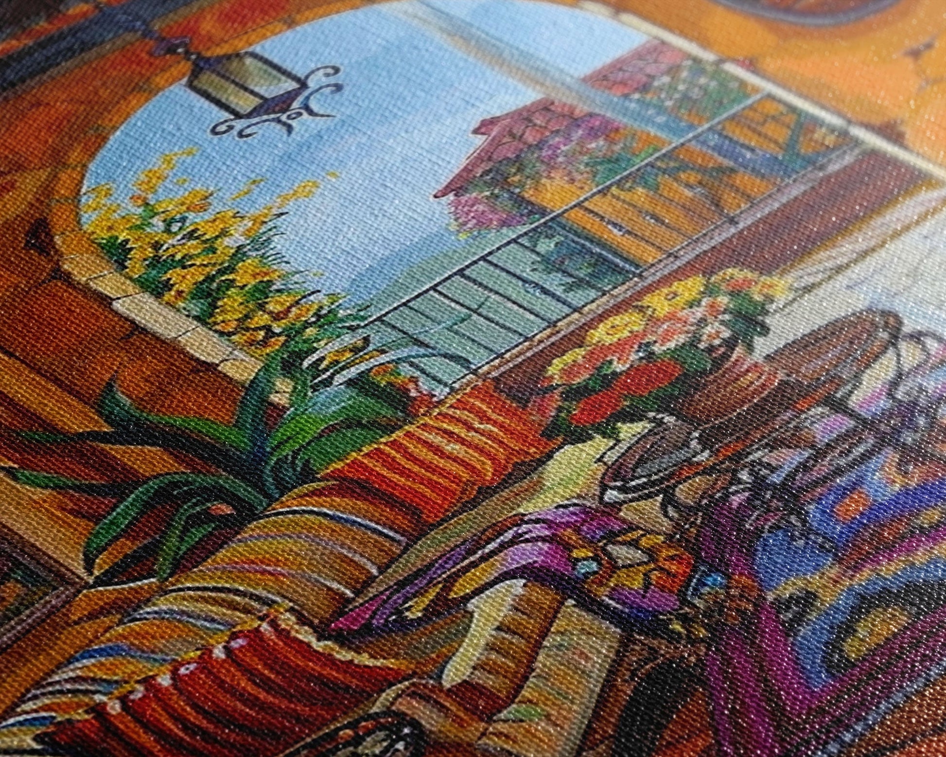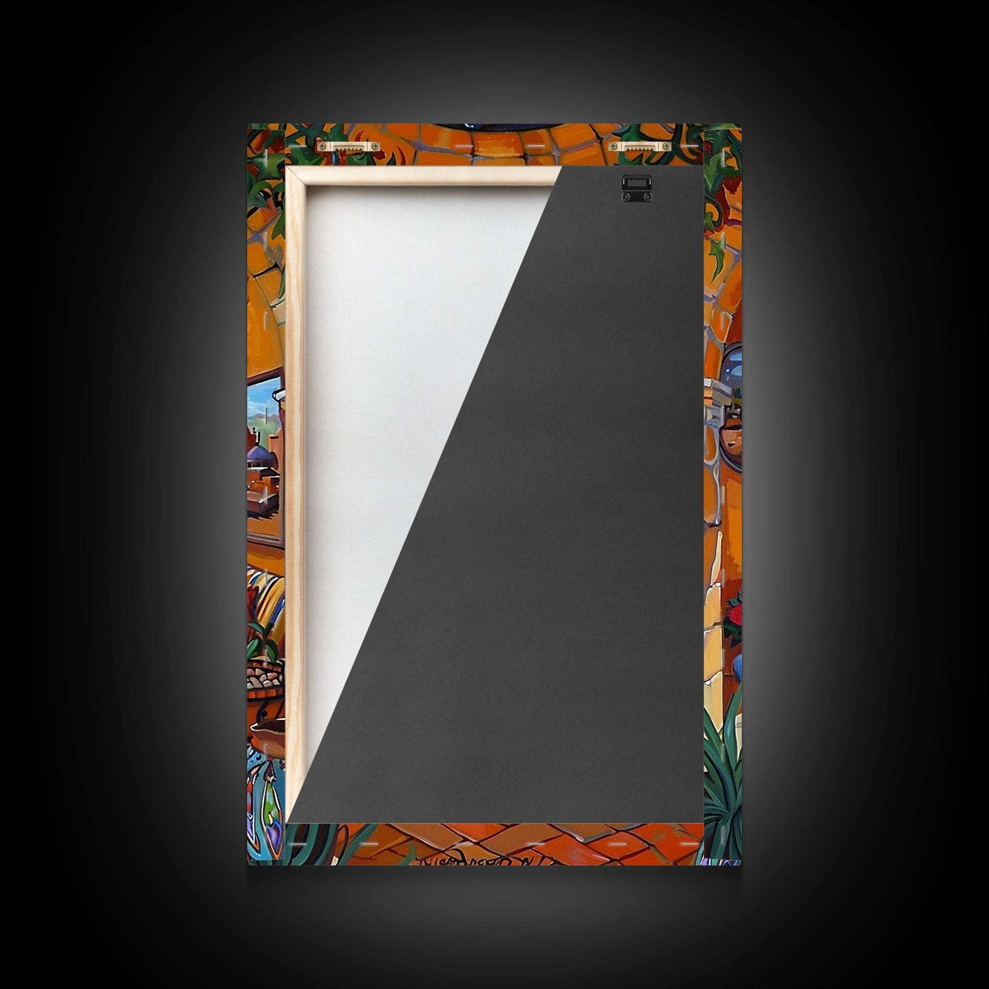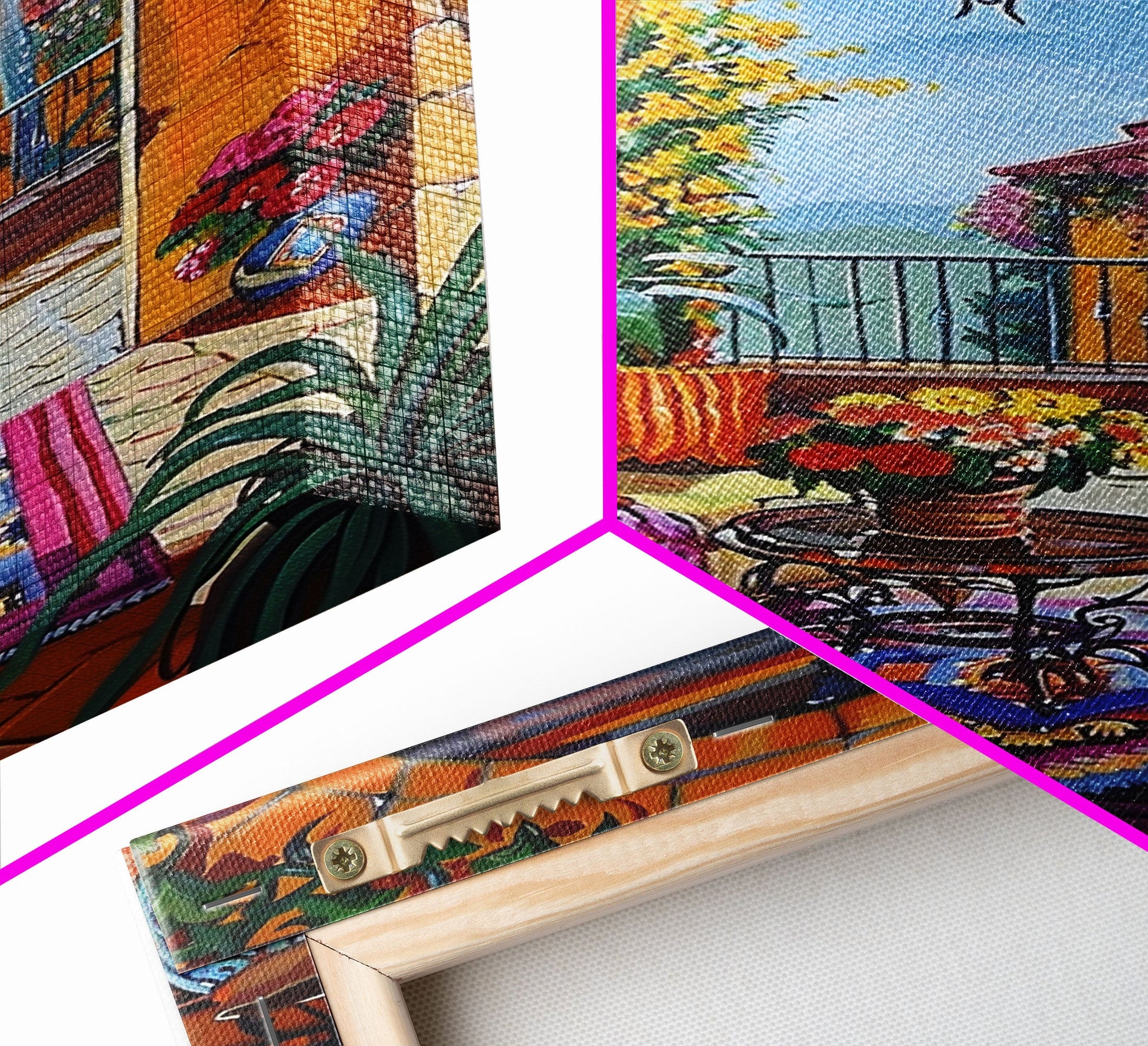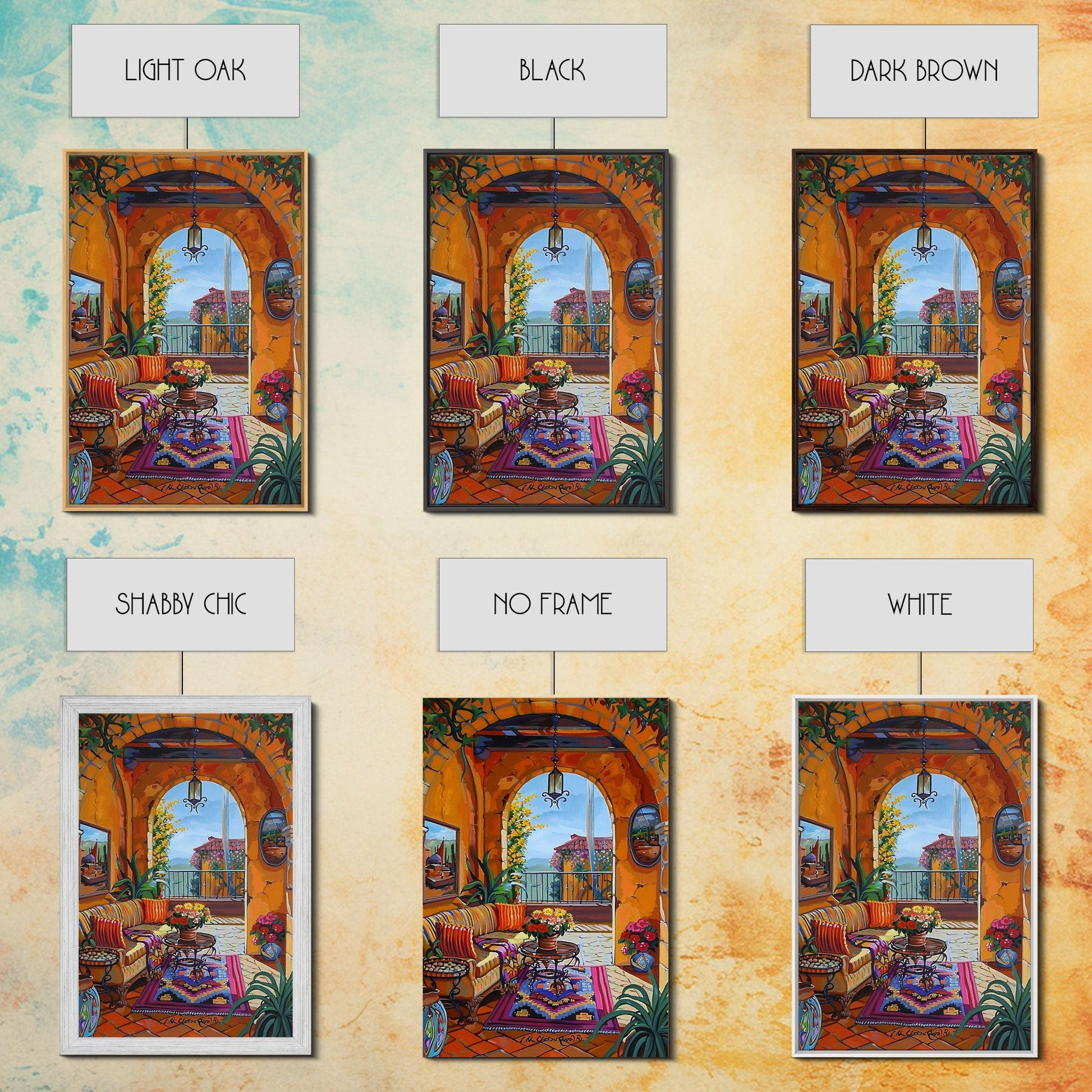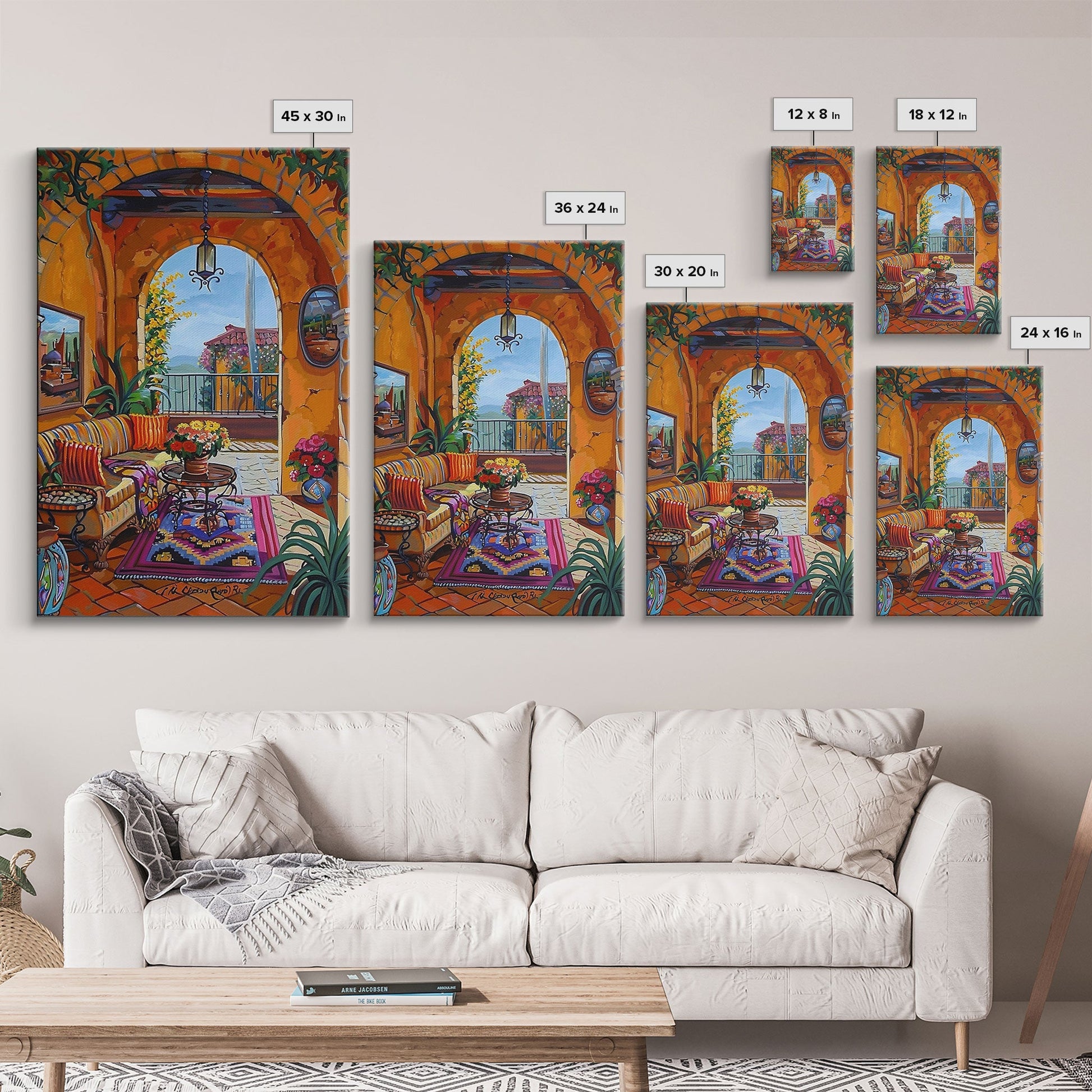 Spanish Villa With Cactus And Flowers Framed Canvas Print Rustic Home Decor Best Gift Idea Bright Courtyard Seasonal Wall Art