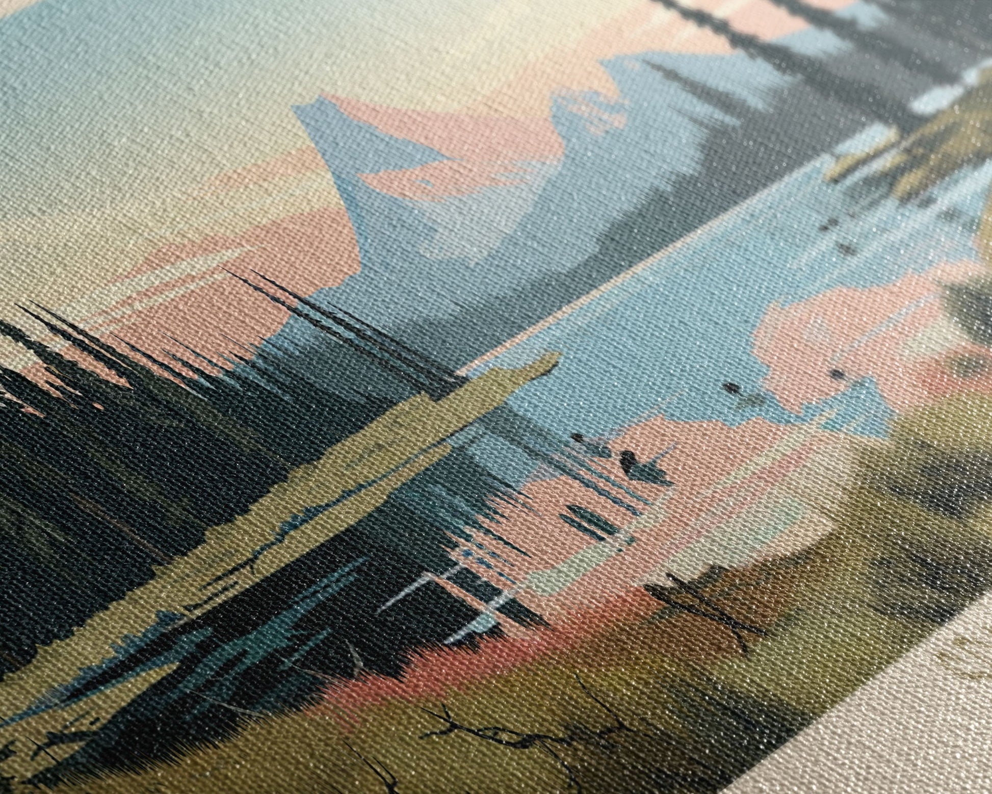 Most of our canvases are made in the USA, with the exception of canvases ordered with the light oak unstained frames, and any large canvases (24x48, 30x60, 16x48 and 20x60) ordered WITH a frame. These are temporarily made in and shipped from Europe, while we try to find a more consistent supplier in the USA.