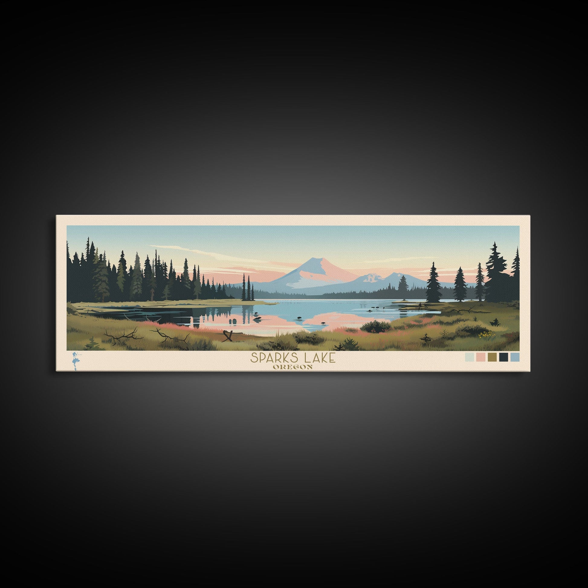 Sparks Lake, Oregon Framed Canvas Print, Lake House Decor, Midcentury Modern Art, Pop Art, Travel Poster, Bedroom Wall Art