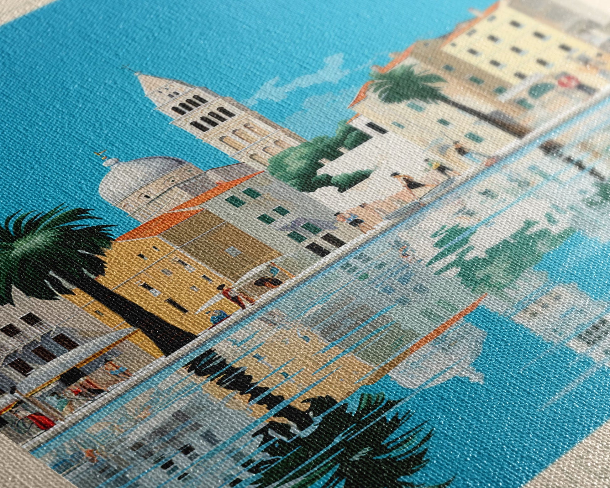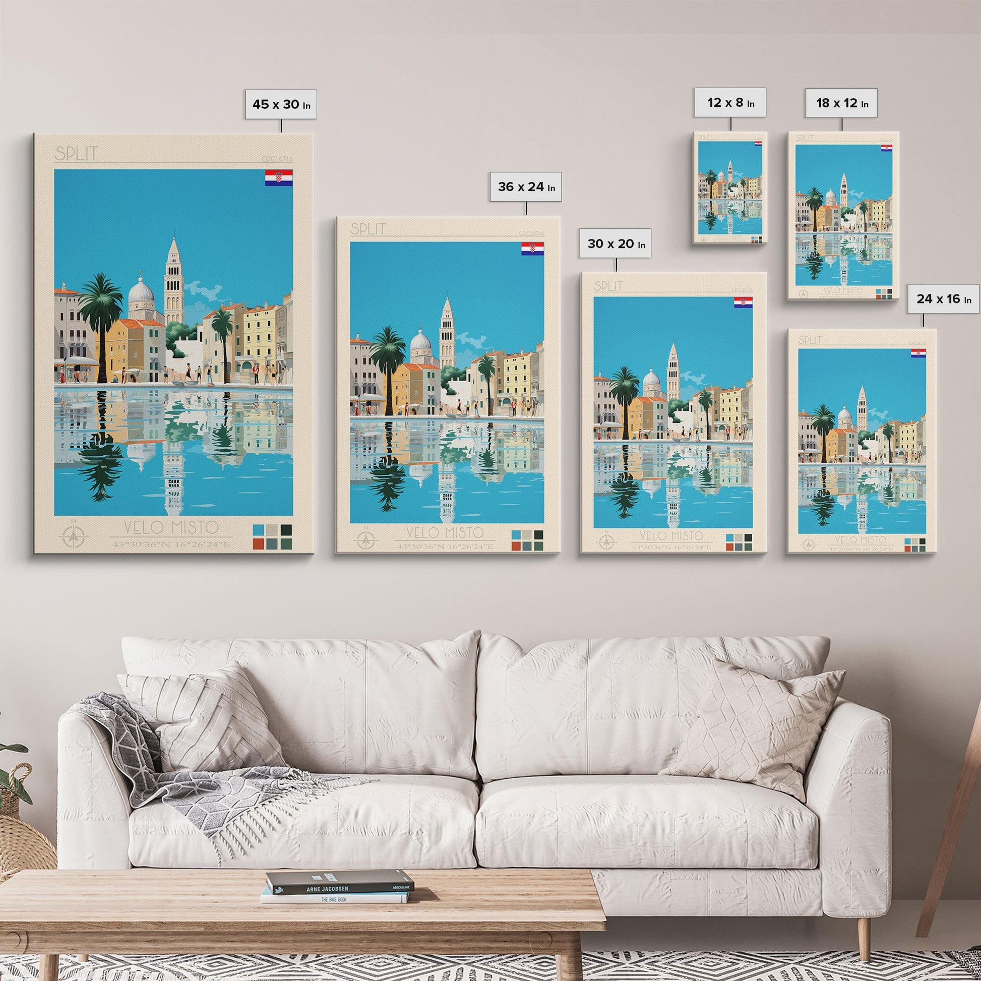 Split Croatia Travel Poster Framed Canvas Print, Midcentury Modern Art, Pop Art Wall Decor, Home Decor, Bedroom Art