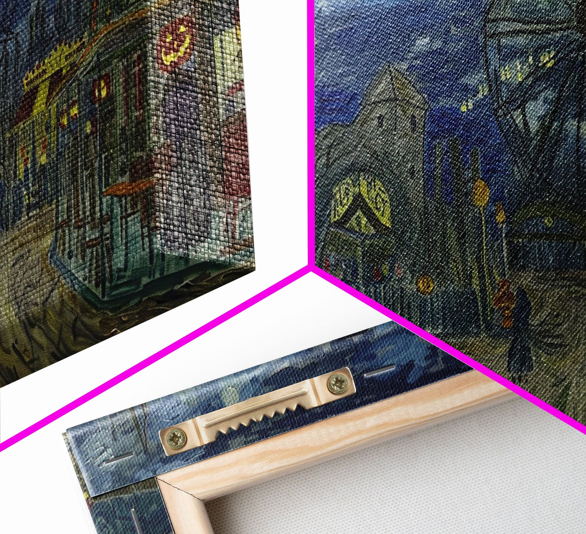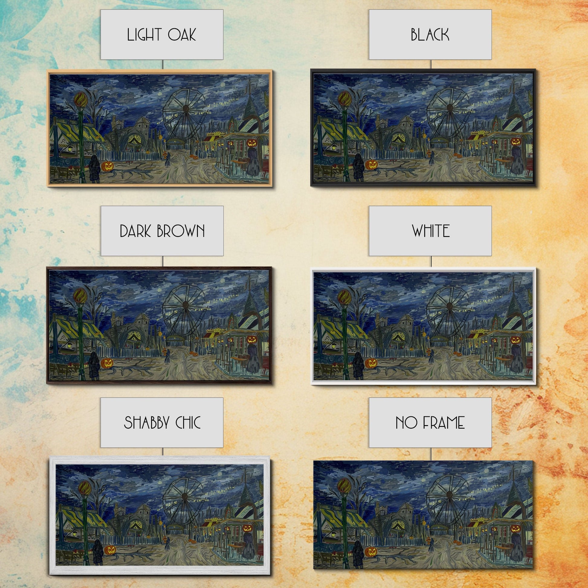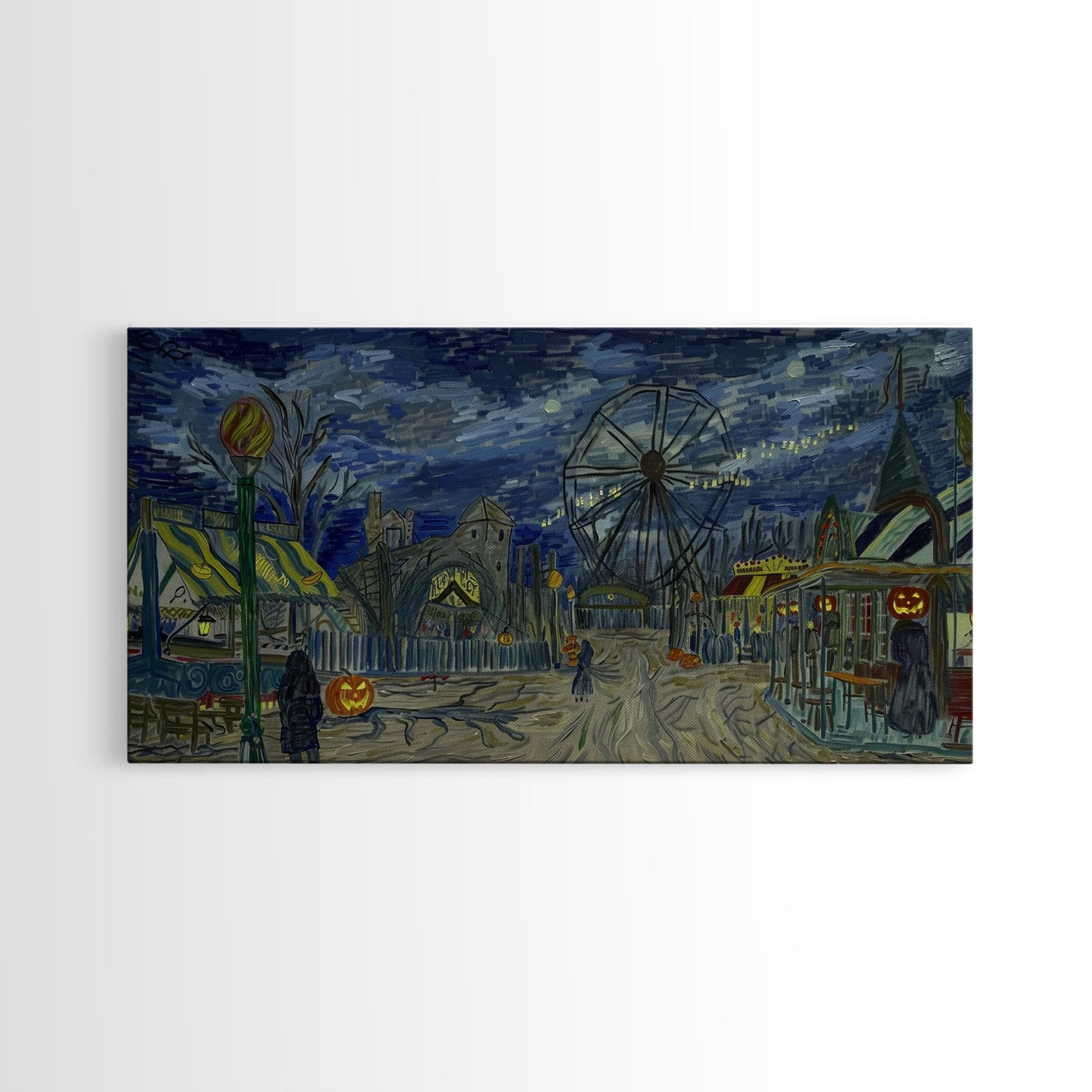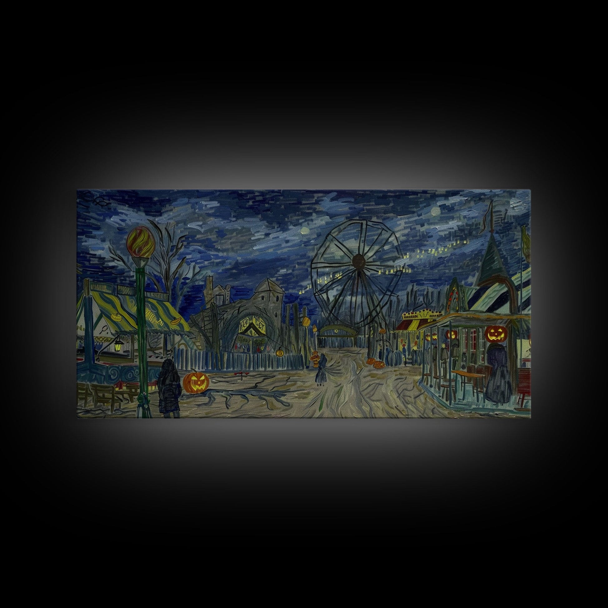 Spooky Haunted Carnival, Framed Canvas Print, Starry Night Inspired Spooky Season Wall Art, Halloween Prop