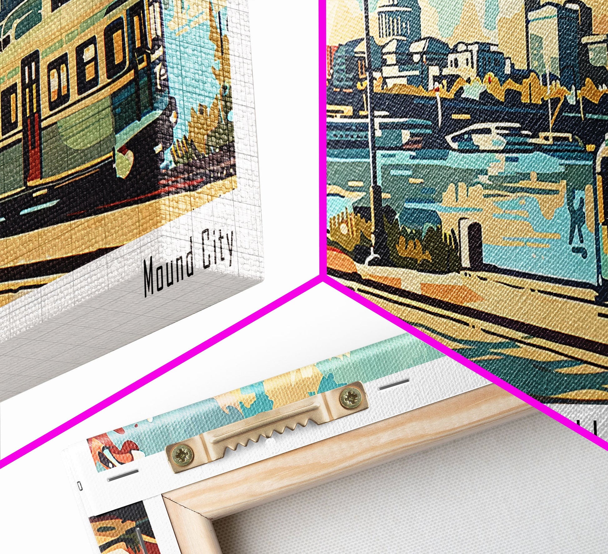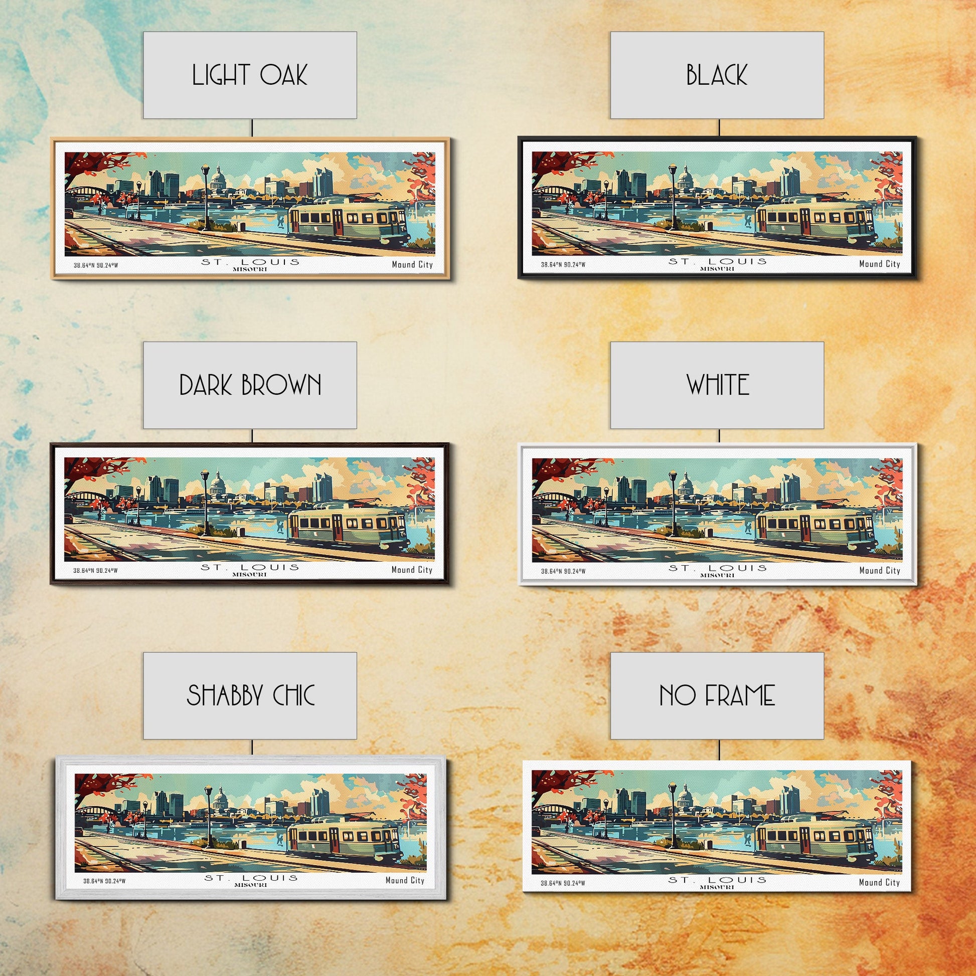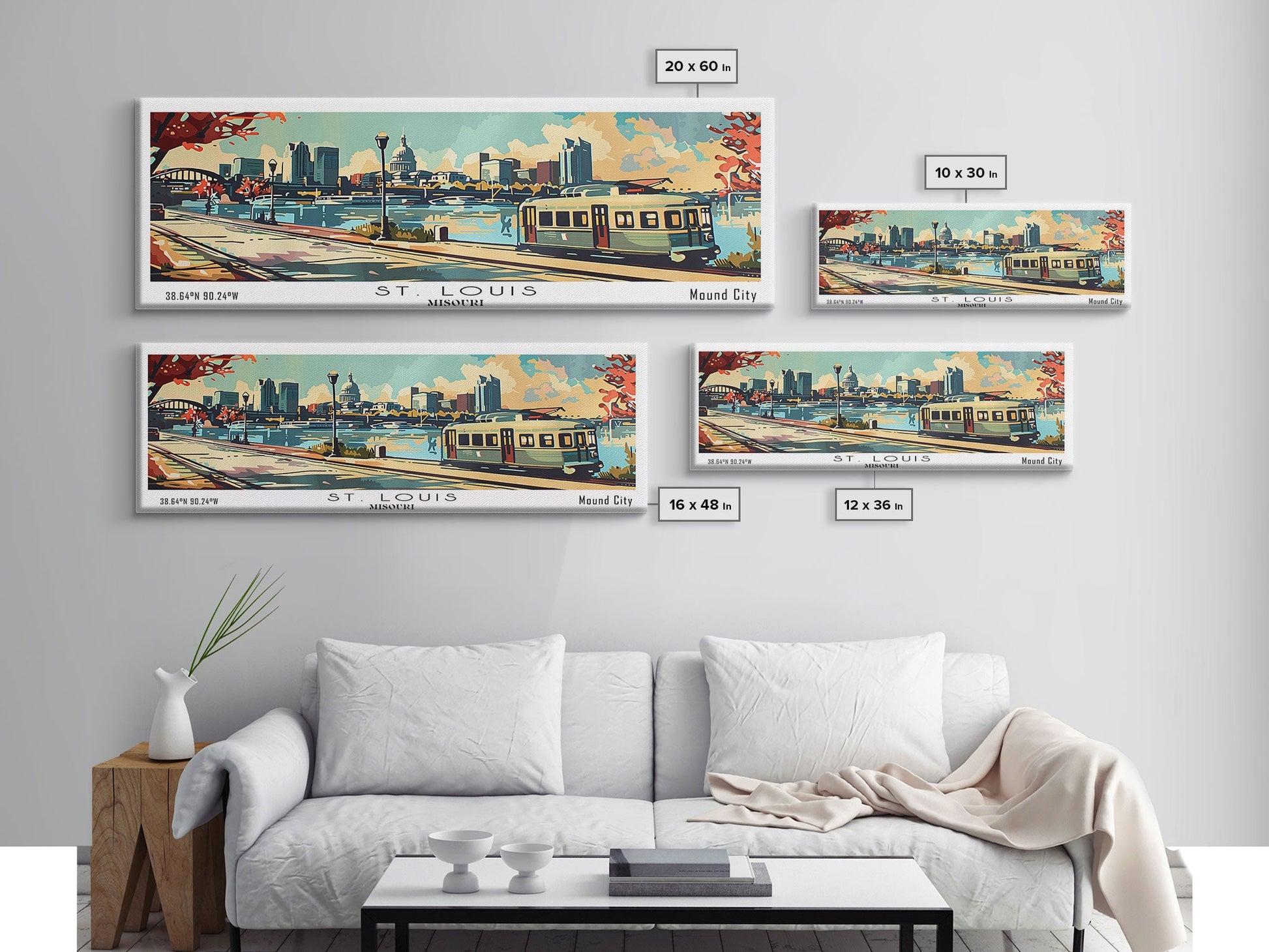 St. Louis Missouri Panoramic Painting, Mid Century Modern Framed Canvas Print, Retro Pop Art Travel Poster, Living Room Wall Art and Office Decor