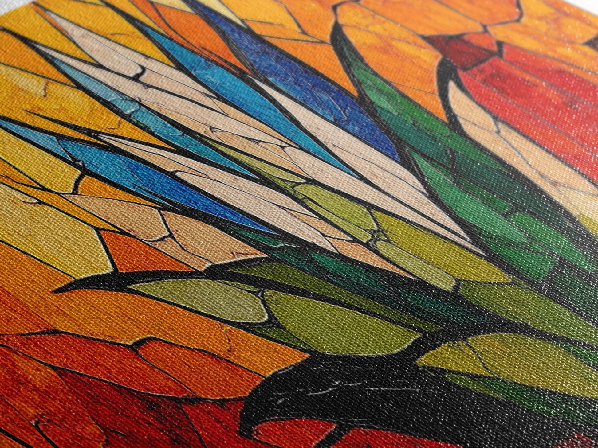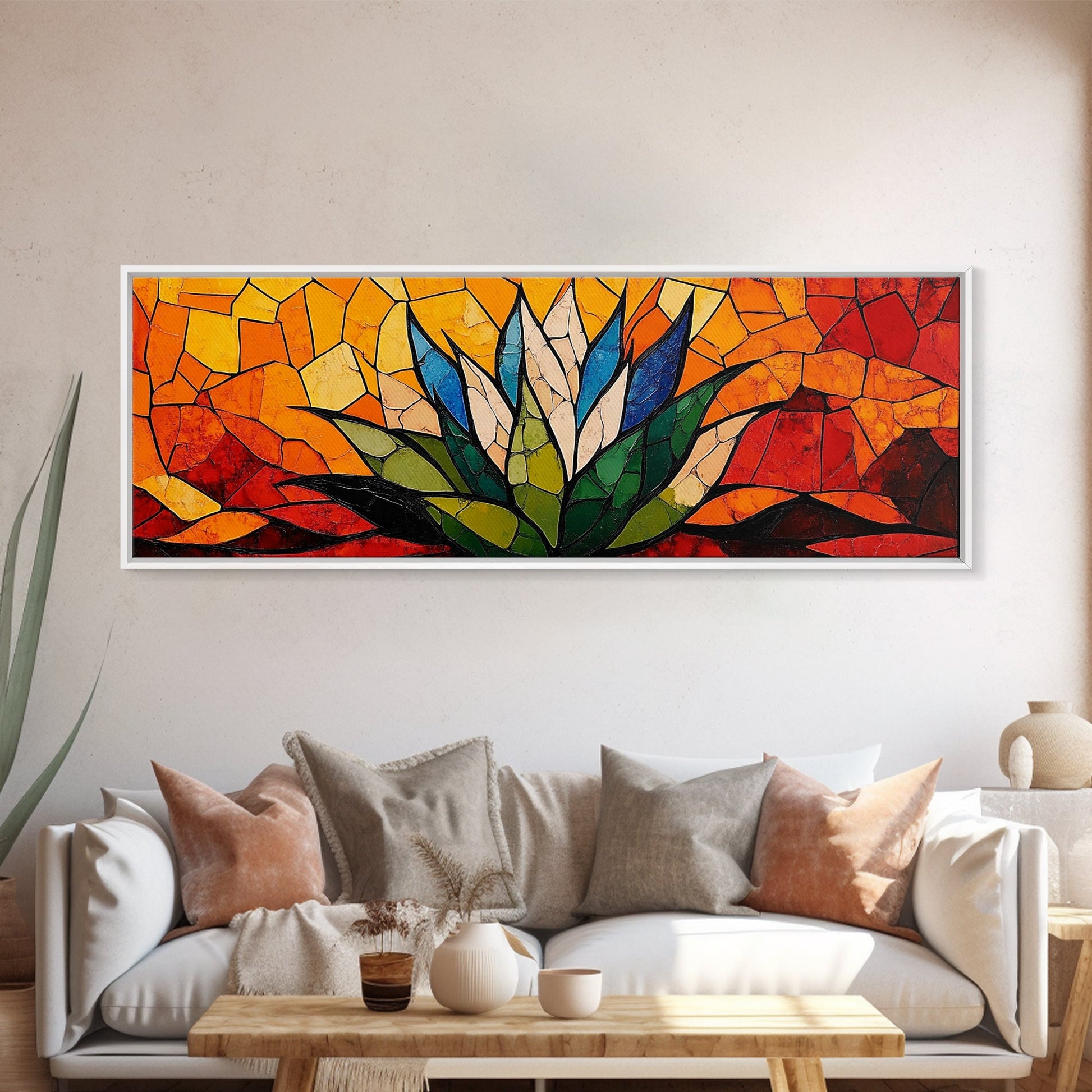 Stained Glass Style Blue Agave Wall Art Canvas Print, Mexicano Wall Art, Panoramic Southwestern Home Decor, Modern Farmhouse Rustic Art