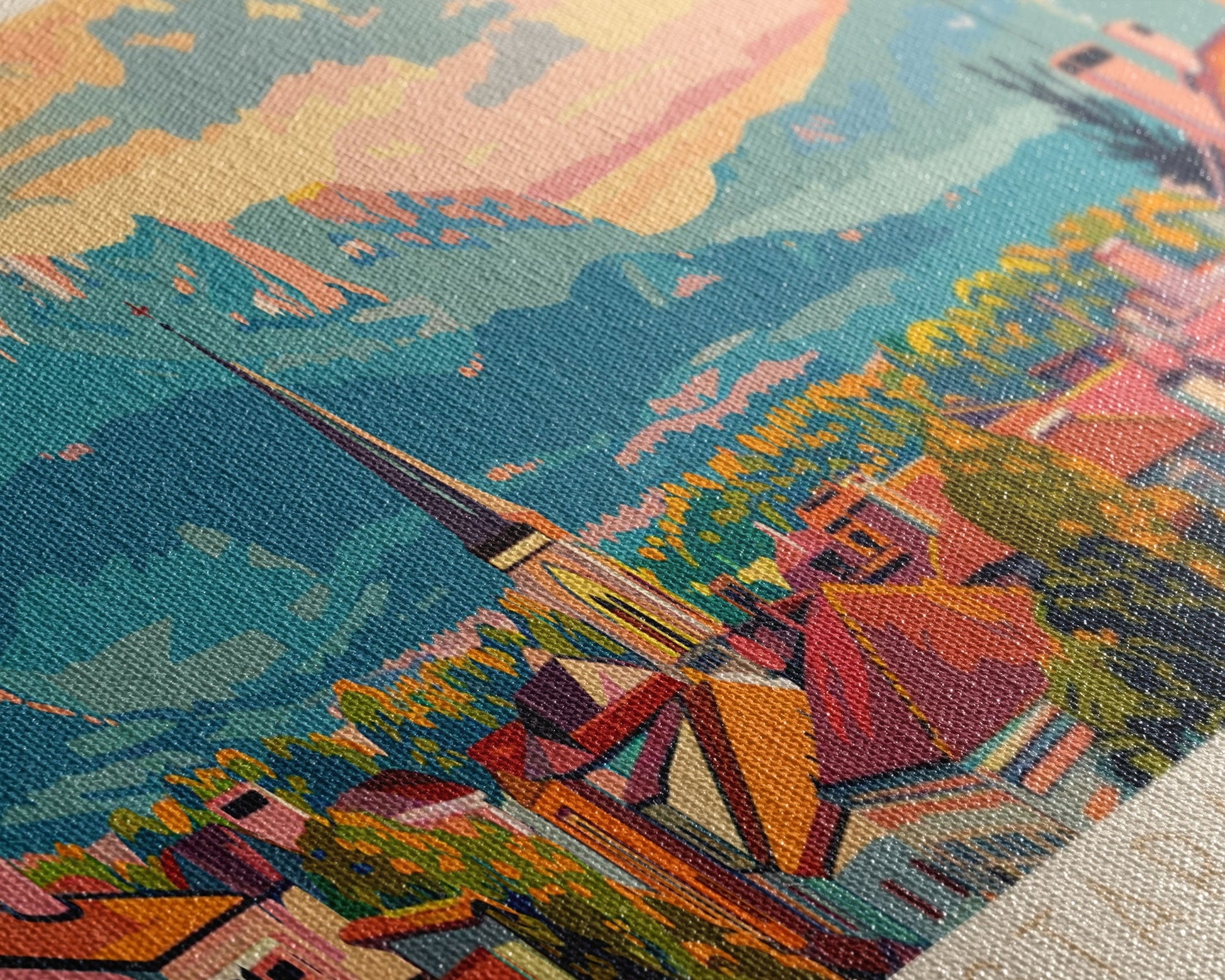Most of our canvases are made in the USA, with the exception of canvases ordered with the light oak unstained frames, and any large canvases (24x48, 30x60, 16x48 and 20x60) ordered WITH a frame. These are temporarily made in and shipped from Europe, while we try to find a more consistent supplier in the USA.