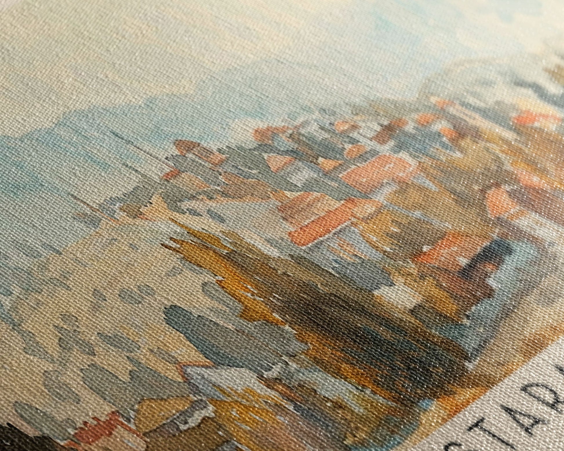 Most of our canvases are made in the USA, with the exception of canvases ordered with the light oak unstained frames, and any large canvases (24x48, 30x60, 16x48 and 20x60) ordered WITH a frame. These are temporarily made in and shipped from Europe, while we try to find a more consistent supplier in the USA.