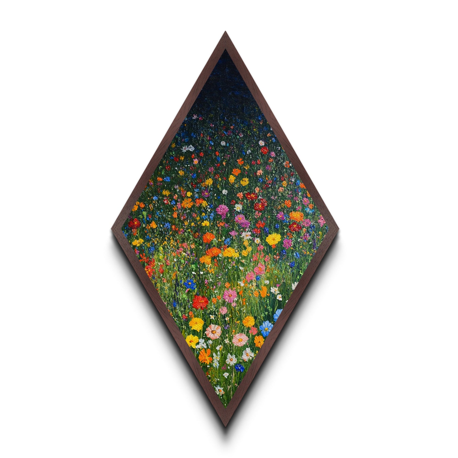 Starburst Bright Rays – Diamond Shaped Canvas Textured Print, retro abstract wall art, vibrant geometric design, bold midcentury decor