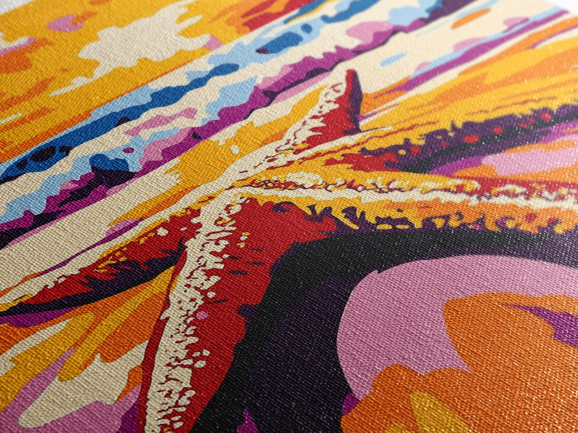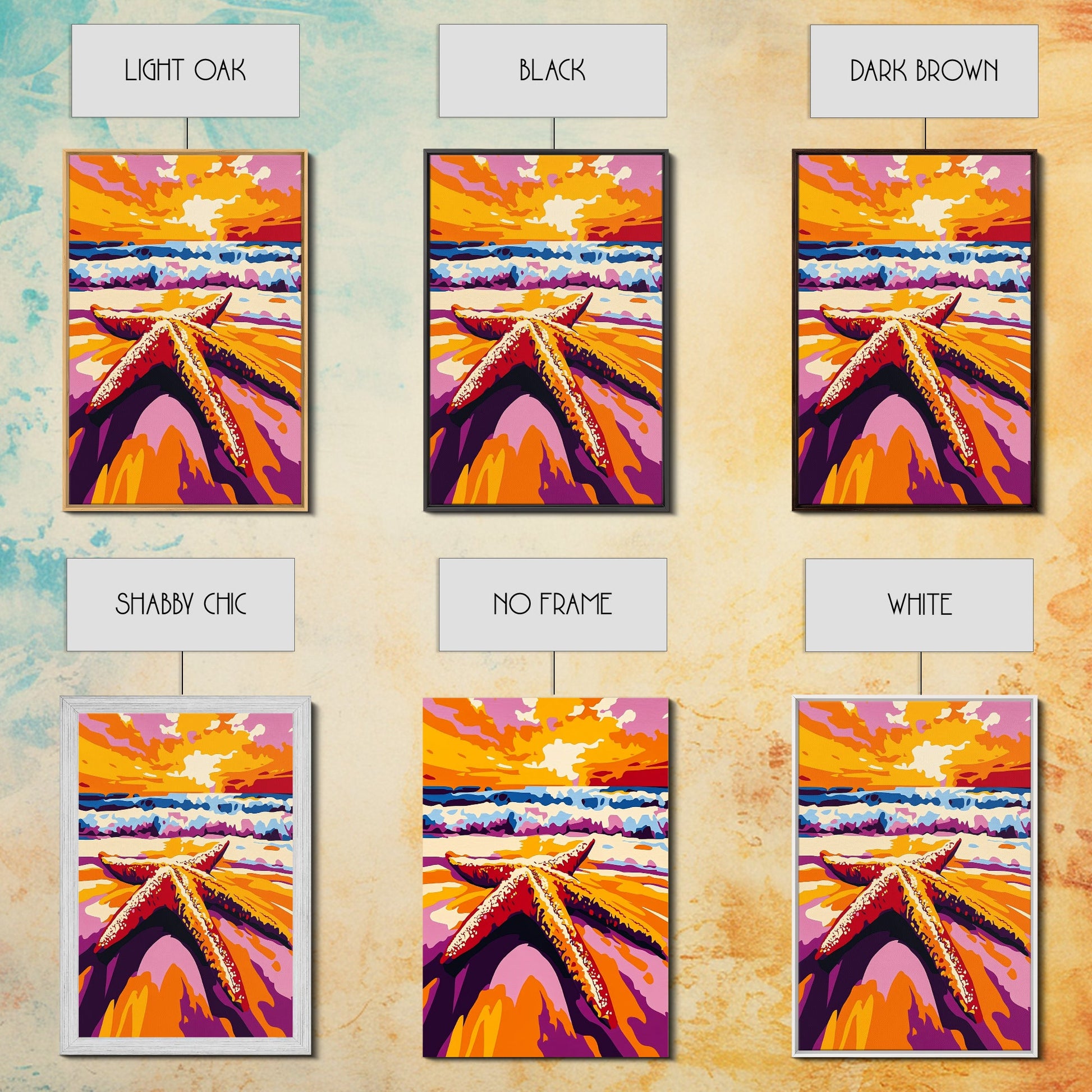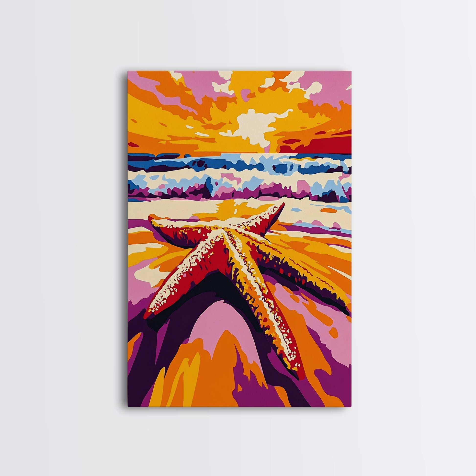 Starfish Beach, Ocean Sunset, Coastal Decor, Framed Canvas Print, Nautical Wall Art, Beach House Decor, Vibrant Painting, Summer Vibes