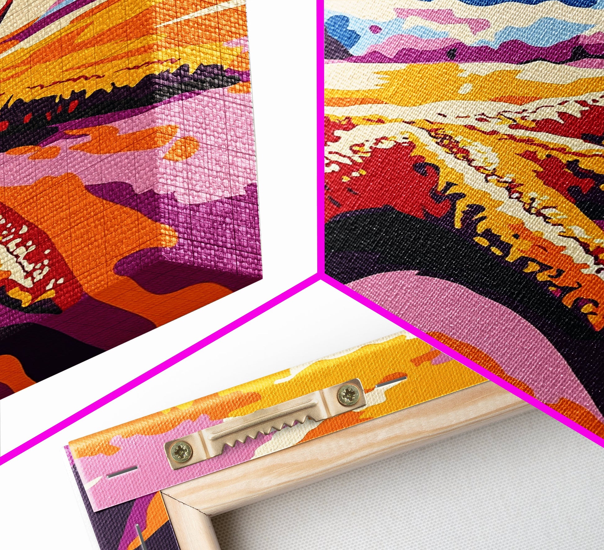 Hello and thank you for taking the time to view our modern high quality giclée artwork! We offer both posters and stretched canvas prints. Our posters are printed on Ultra Matte 60 lb / 230 GSM high quality photo paper, with a thickness of 10 mil. Our canvases are printed on museum grade 350 GSM canvas material with ECO friendly archival grade ink, then hand stretched and stapled over premium, FSC certified and shrink resistant frames. Designed and built to last a lifetime.