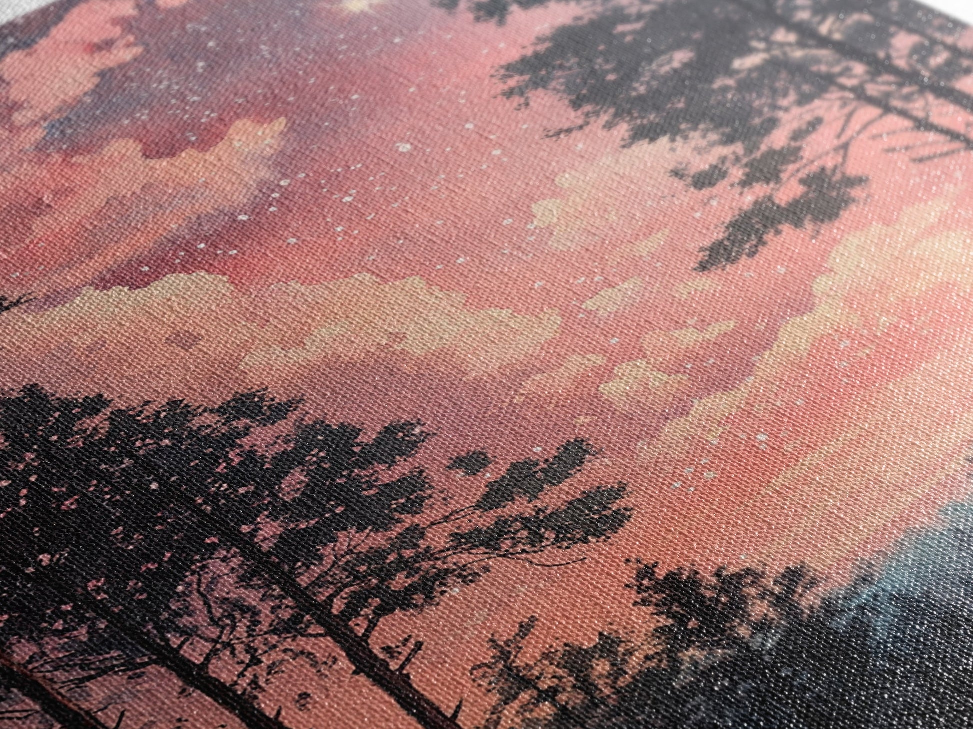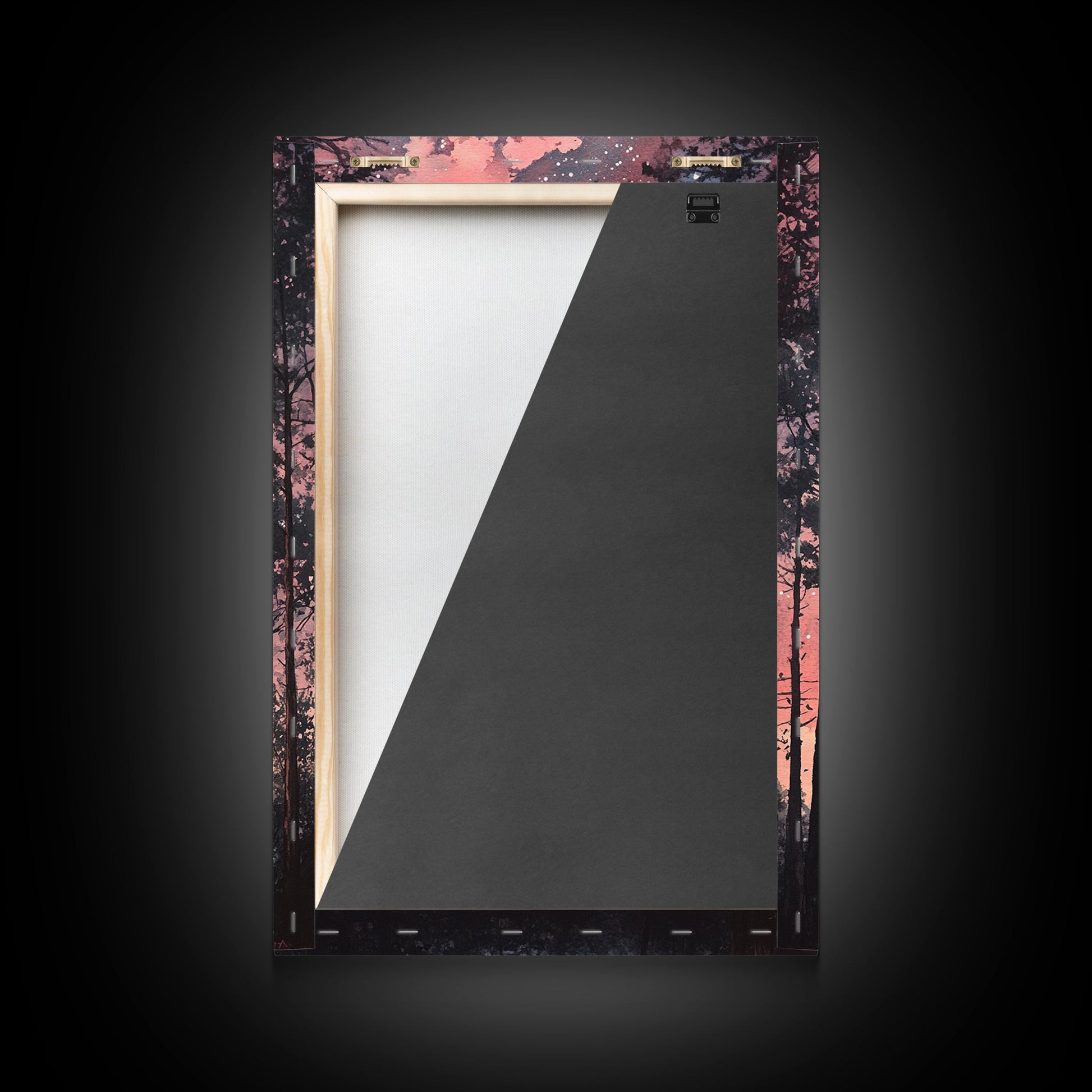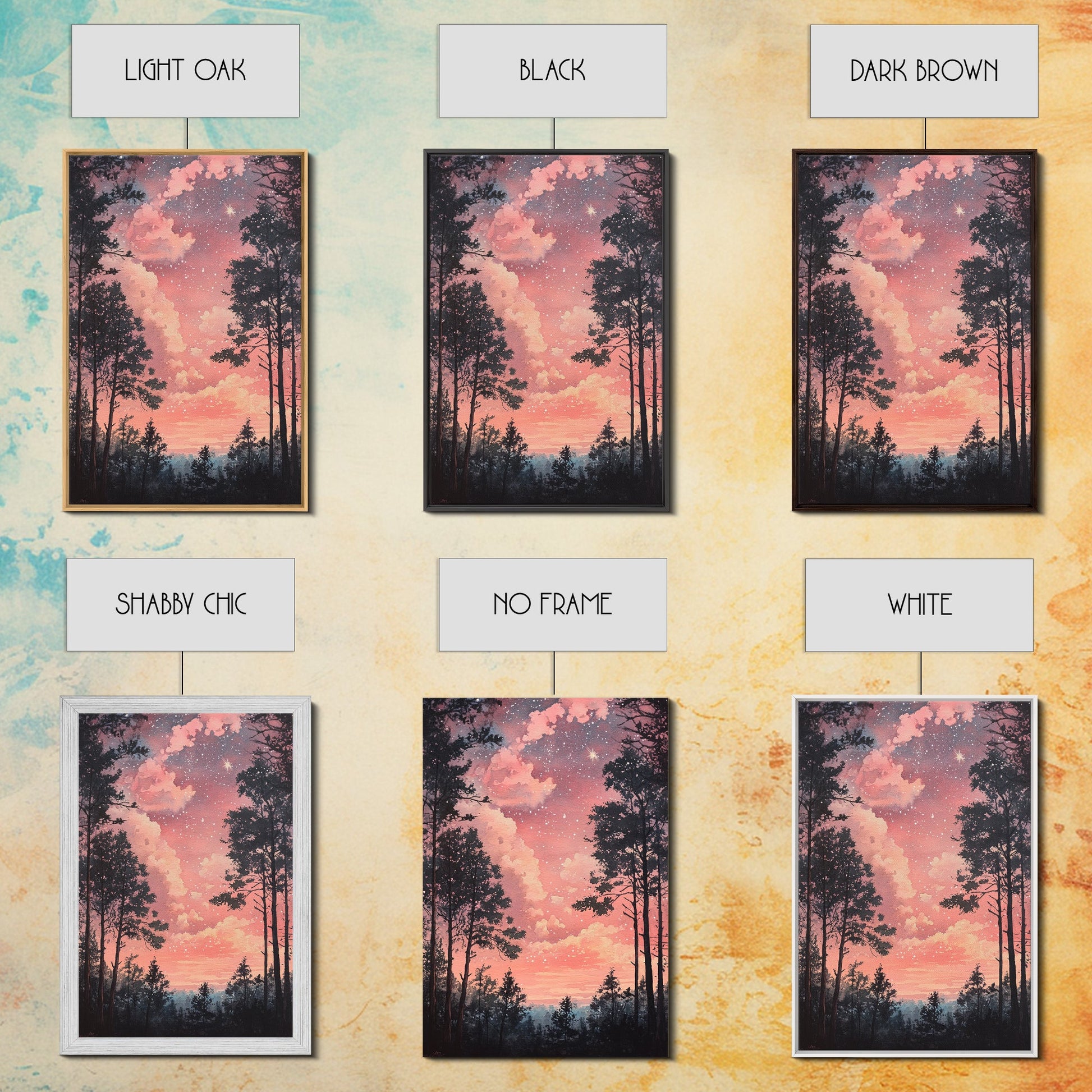 Starry forest scene painting on framed canvas print, forest at dusk painting, smoky mountain art, wabi sabi art, above couch decor
