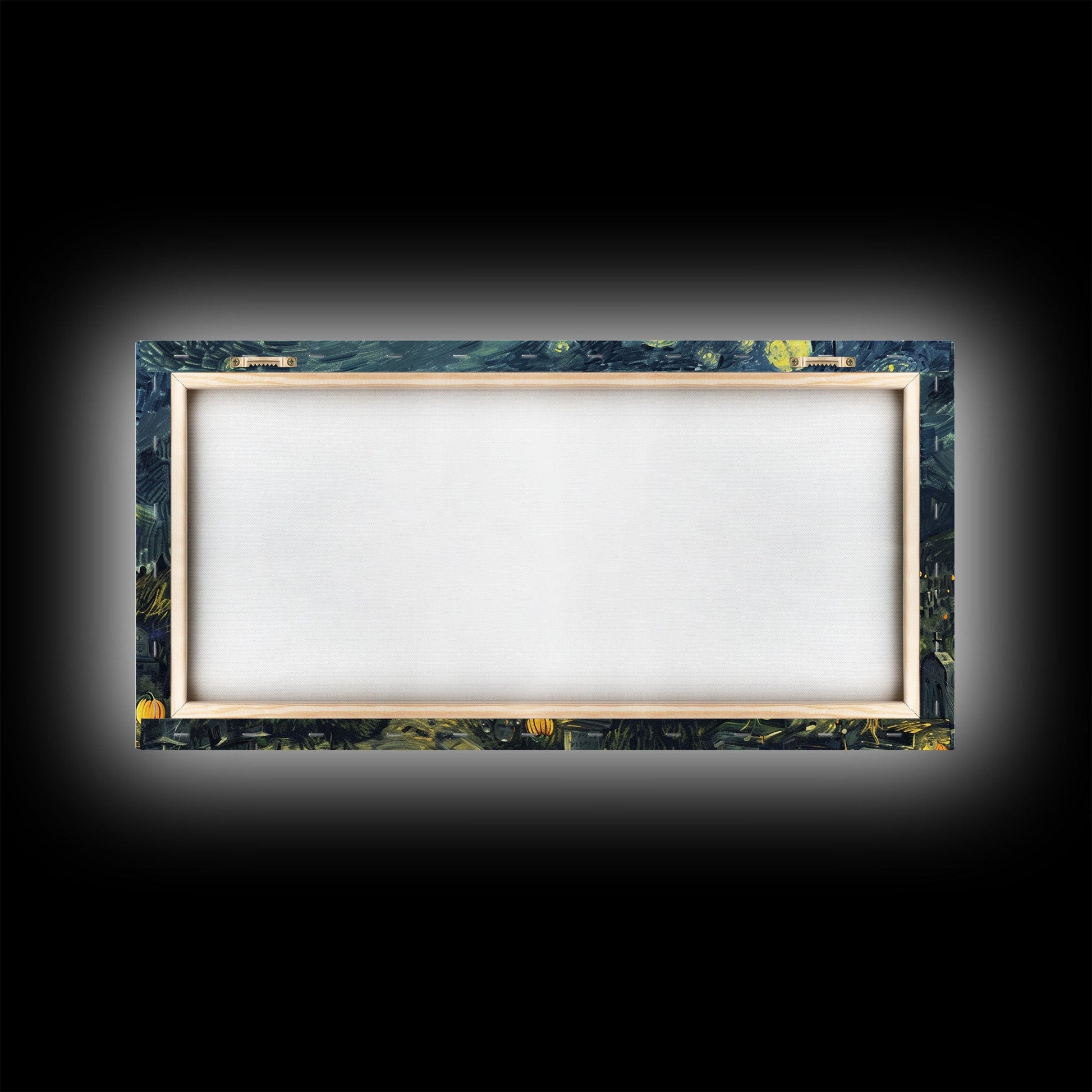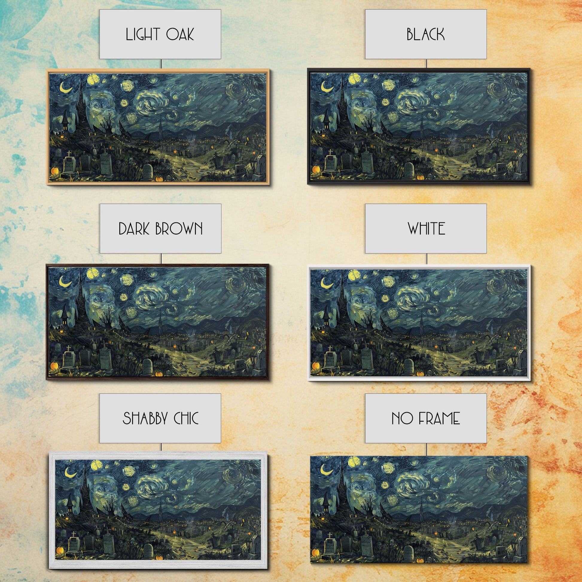 Starry Night Inspired Haunted Cemetery Framed Canvas Print, Halloween Wall Decor, Art Prints, Creepy Art
