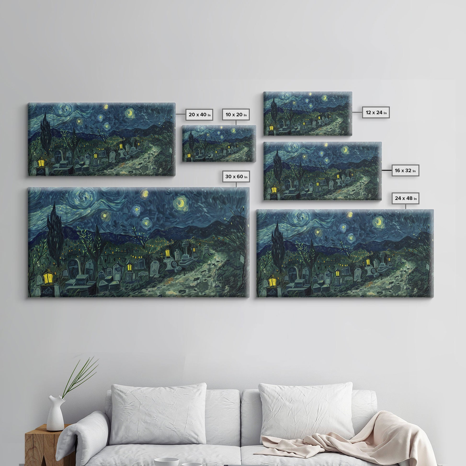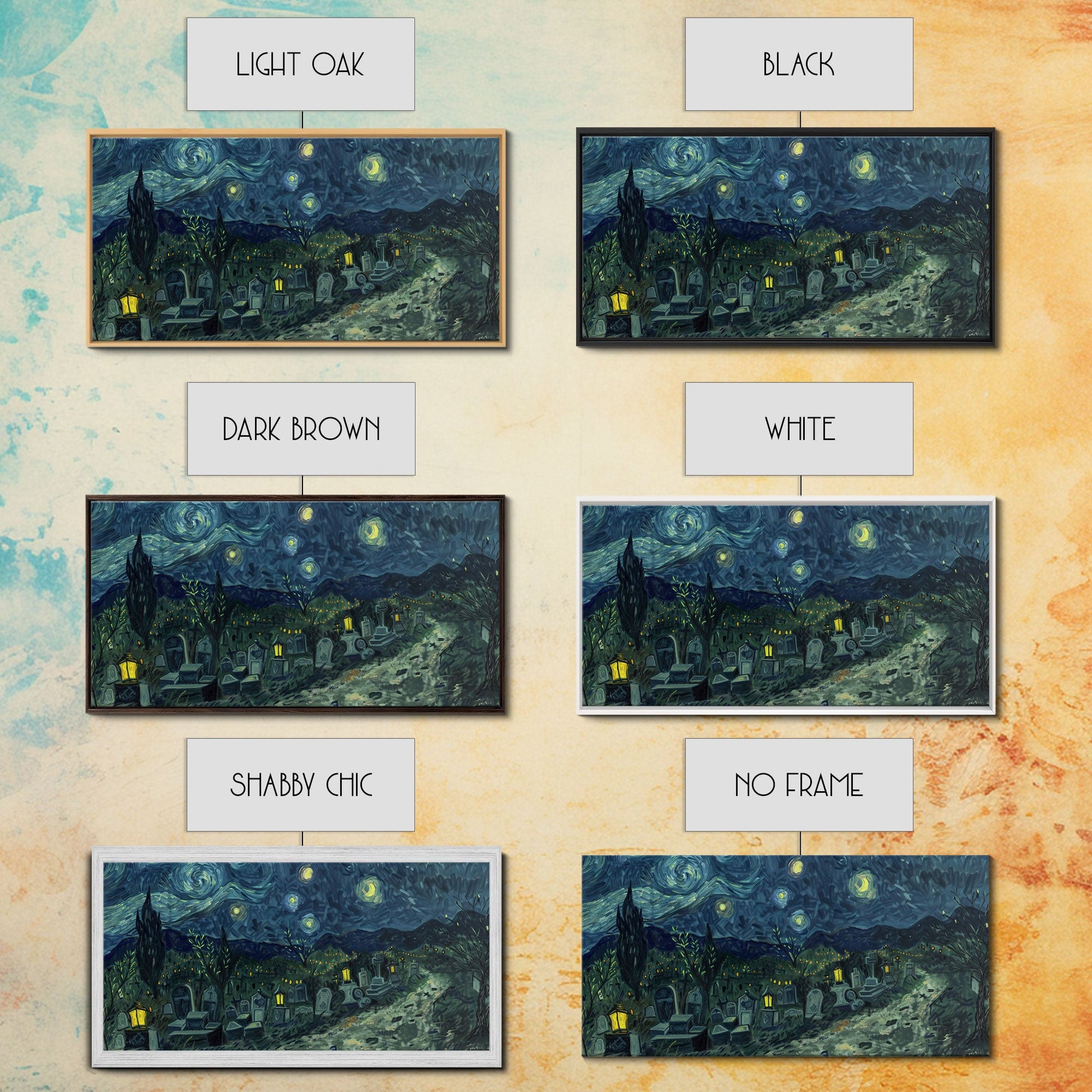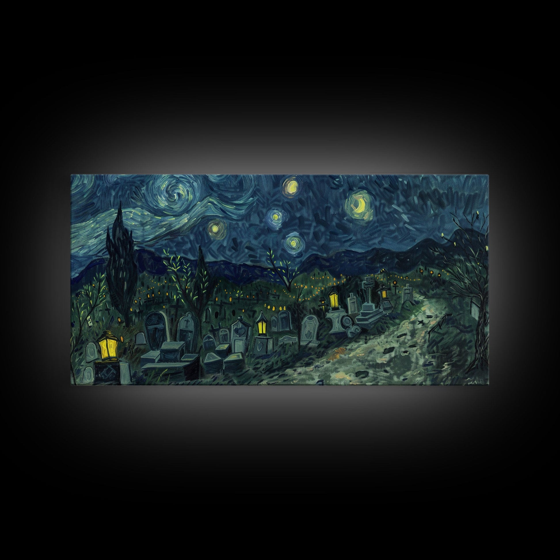 Starry Night Inspired Haunted Cemetery, Framed Canvas Print, Spooky Season Gift Idea, Halloween Decor, Halloween Prop