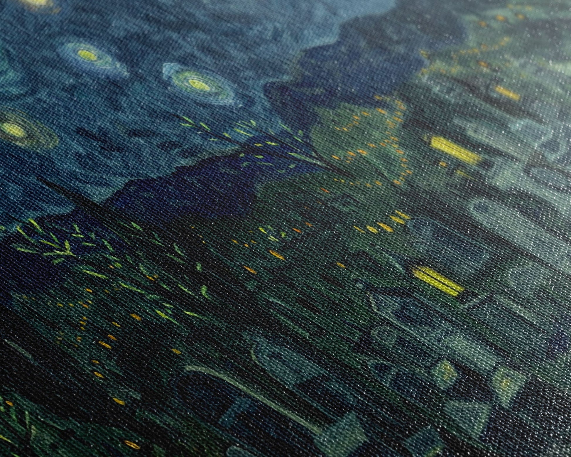 Most of our canvases are made in the USA, with the exception of canvases ordered with the light oak unstained frames, and any large canvases (24x48, 30x60, 16x48 and 20x60) ordered WITH a frame. These are temporarily made in and shipped from Europe, while we try to find a more consistent supplier in the USA.