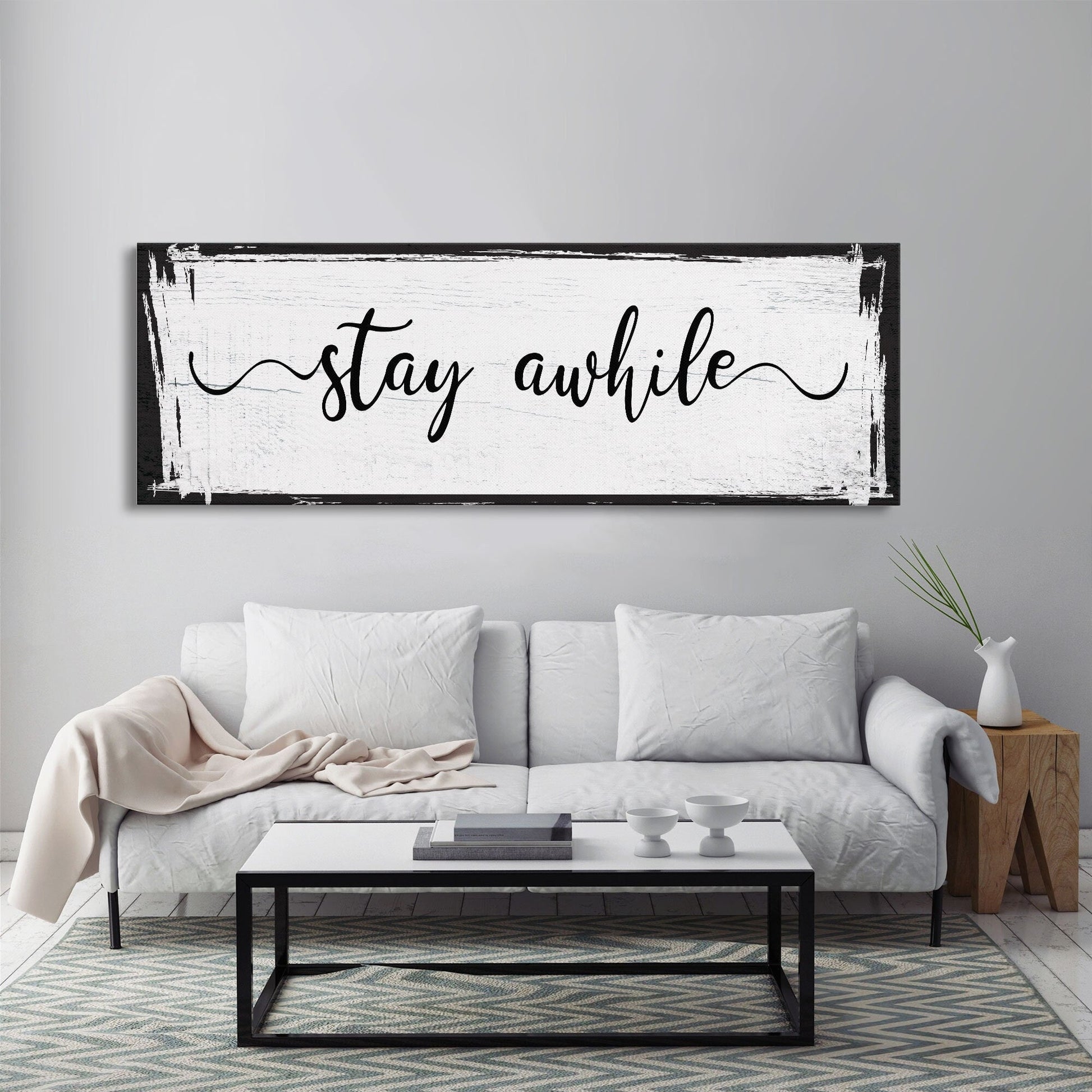 Stay awhile sign, Stay Awhile Canvas Print, Living Room Signs, Living room wall decor, Entryway Wood sign, wooden signs, Mothers Day gifts