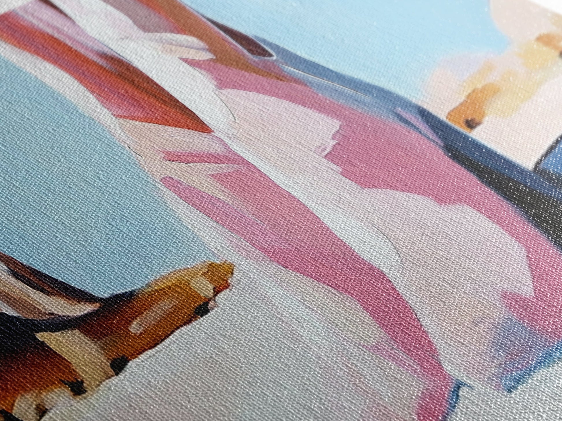 Most of our canvases are made in the USA, with the exception of canvases ordered with the light oak unstained frames, and any large canvases (24x48, 30x60, 16x48 and 20x60) ordered WITH a frame. These are temporarily made in and shipped from Europe, while we try to find a more consistent supplier in the USA.