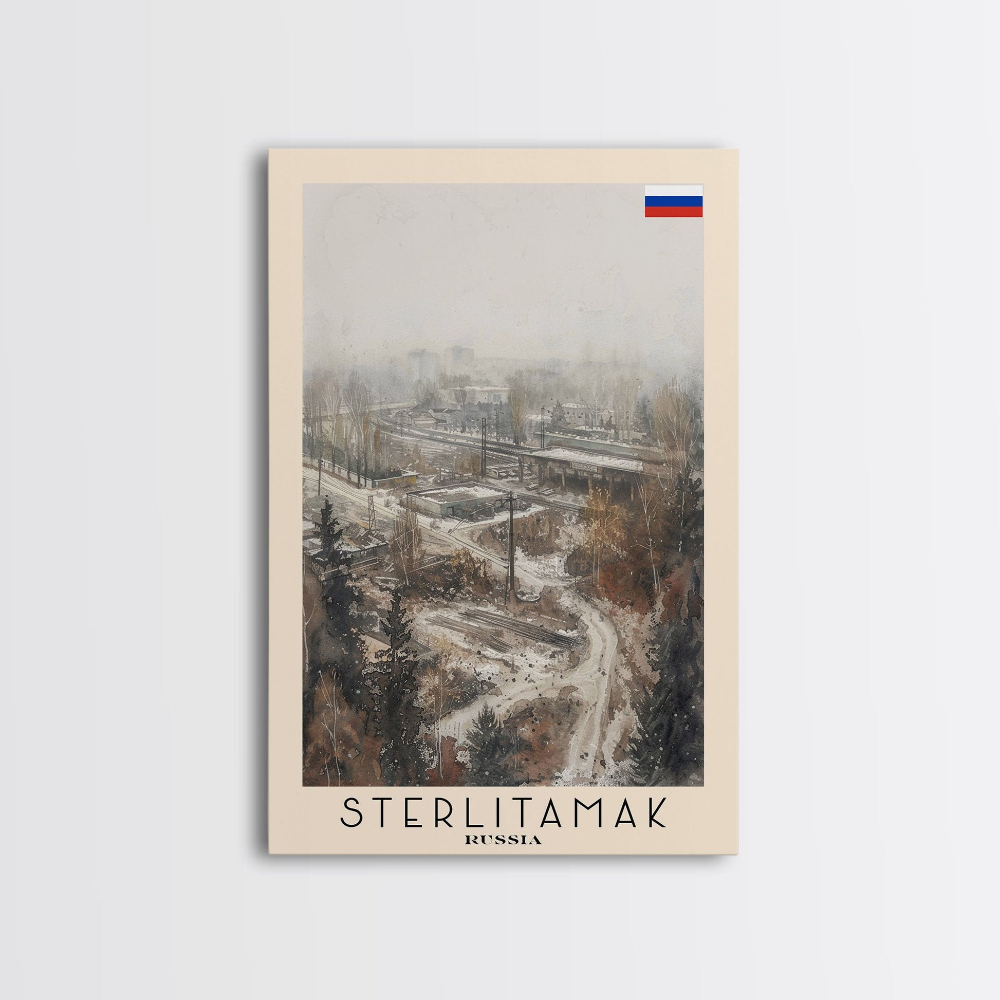 Sterlitamak Russia Travel Poster Framed Canvas Print, Watercolor Painting, Scenic Wall Art, Home Decor, Russian Landscape, Traditional Art