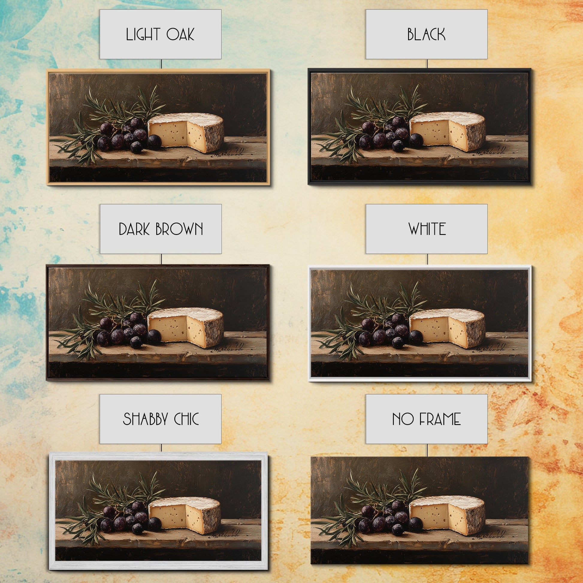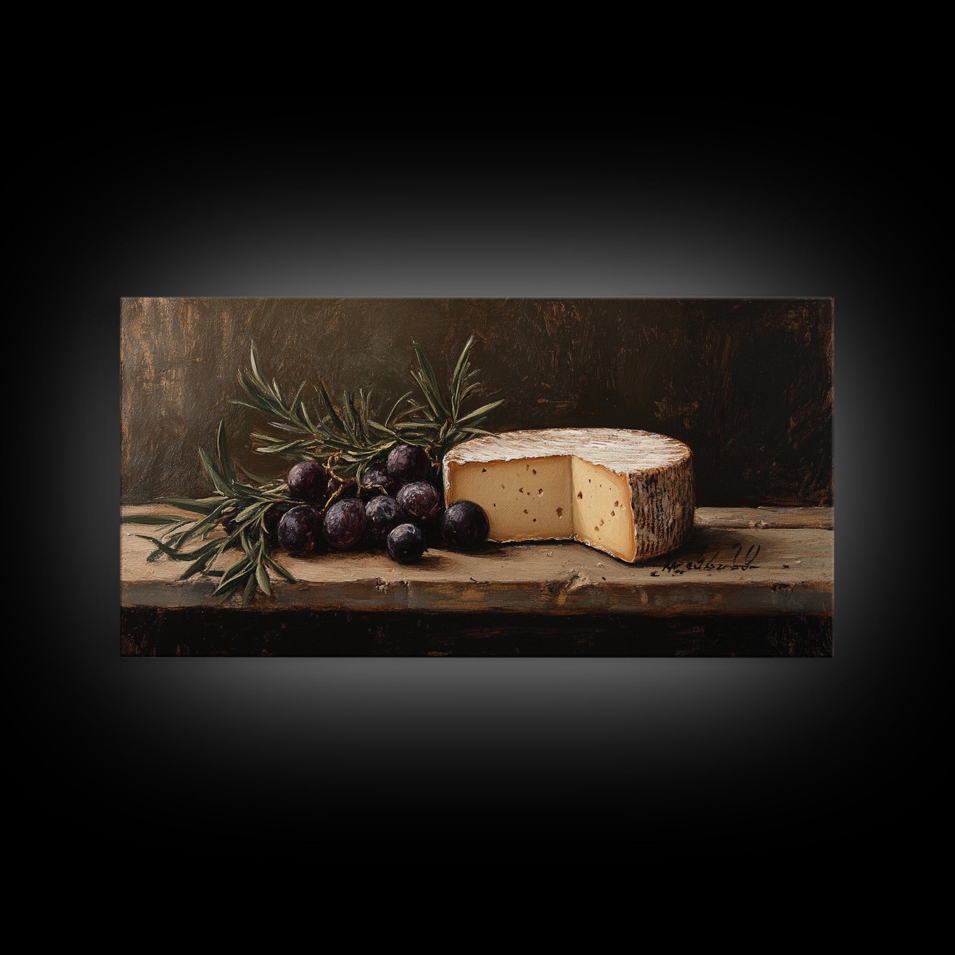 Still Life of FIgs and Cheese - Framed Canvas Print Ready To Hang Wall Art - Oil Painting Of Cheese, Cheese Painting, Kitchen Art
