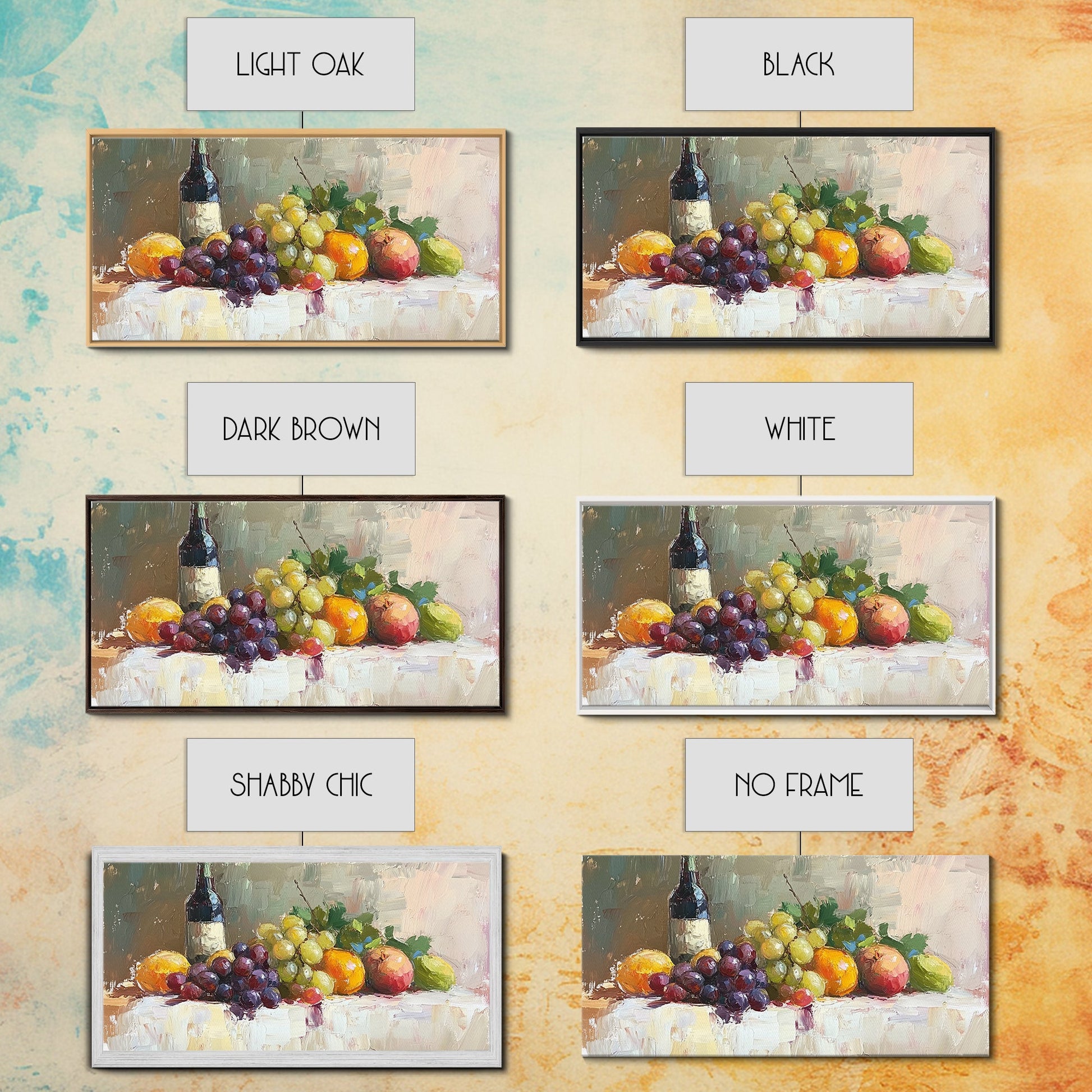 Still Life of Grapes, Fruit and Wine, Framed Canvas Print, Eclectic Kitchen Home Decor, Kitchen Wall Art, Dining Room Wall Art, Art For Kitchen