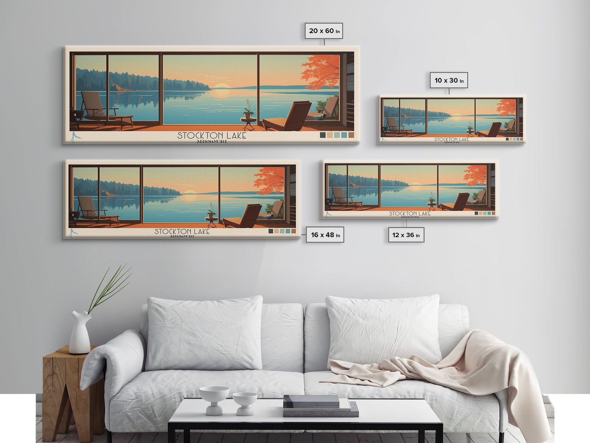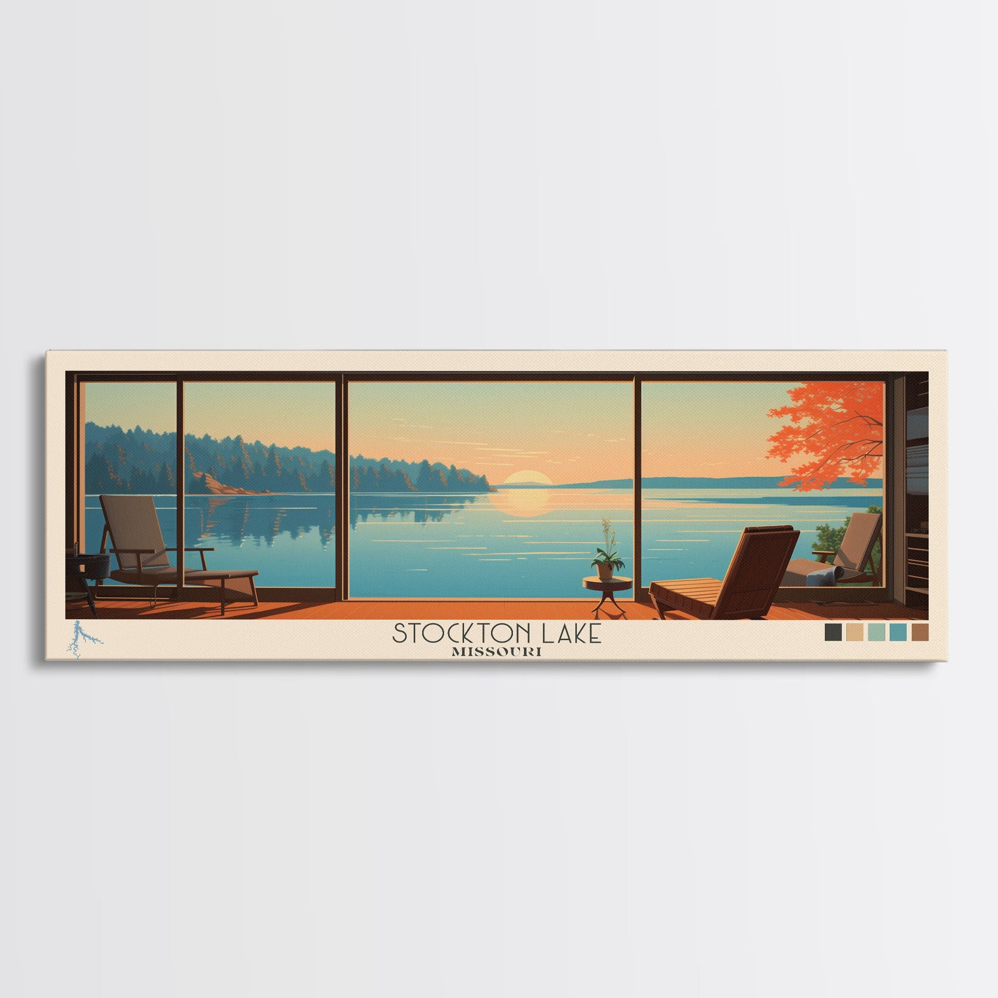 Stockton Lake, Missouri Framed Canvas Print, Lake House Art, Midcentury Modern Decor, Pop Art, Travel Poster, Living Room Wall Art
