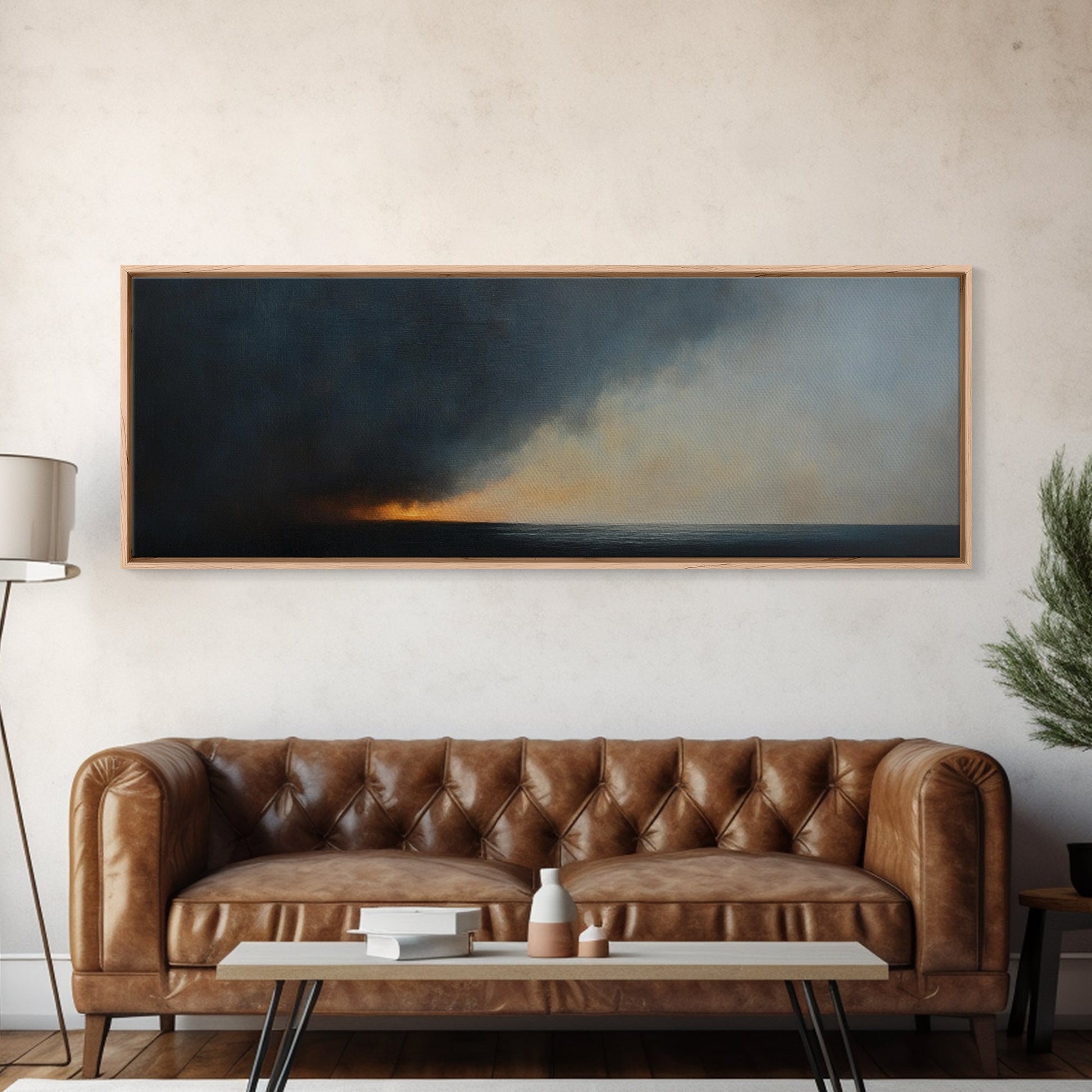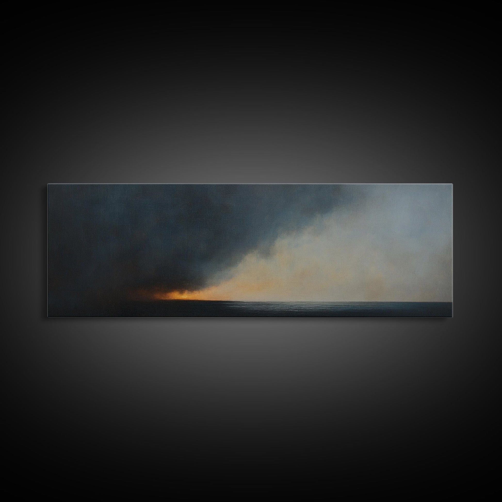 Storm Clouds Rolling In - Framed Canvas Print - Dark and Moody Landscape Painting - Seascape Painting - Ocean Art - Nautical Decor