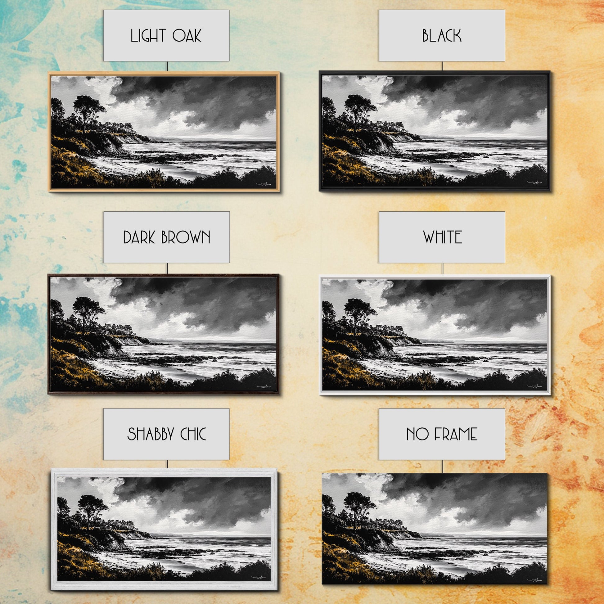 Stormy Coast, Dramatic Sky, Black and White Seascape, Framed Canvas Print, Coastal Wall Art, Large Landscape, Entryway Decor, Moody Art