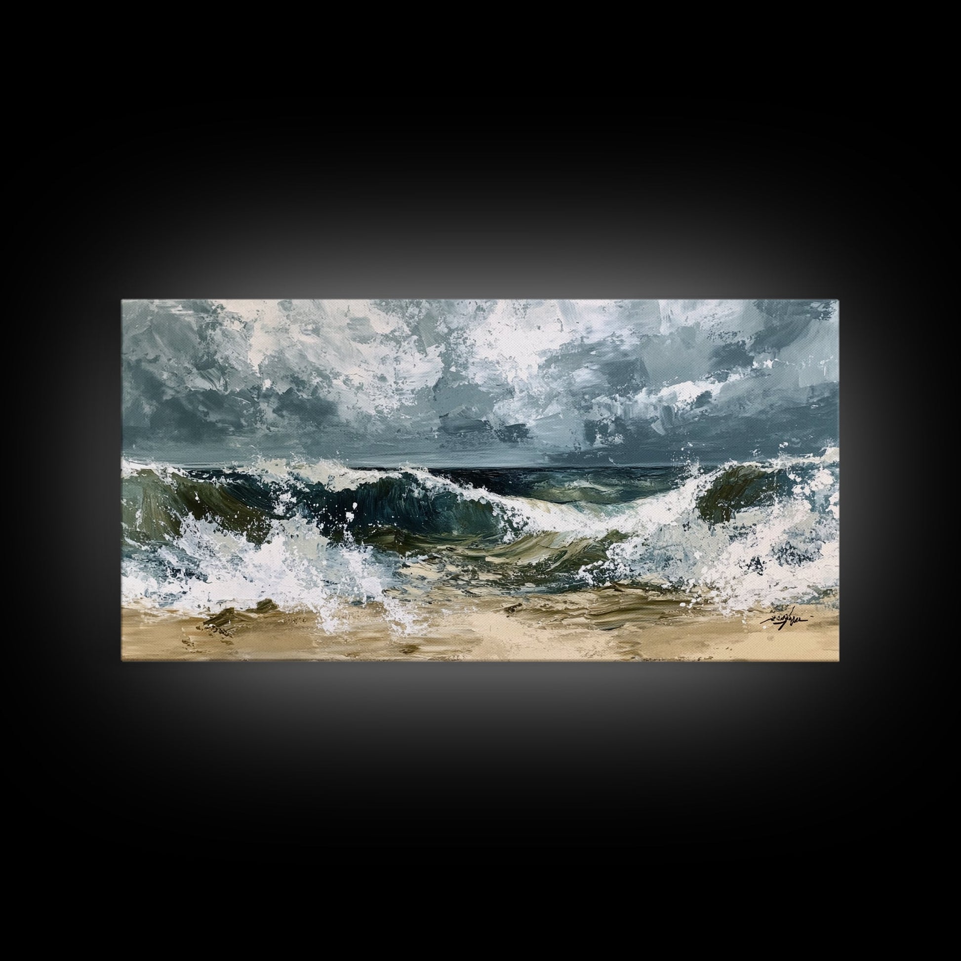 Stormy Ocean, Seascape Painting, Nautical Painting, Coastal Landscape Art, Horizontal Wall Art, Canvas Print, Rustic Decor